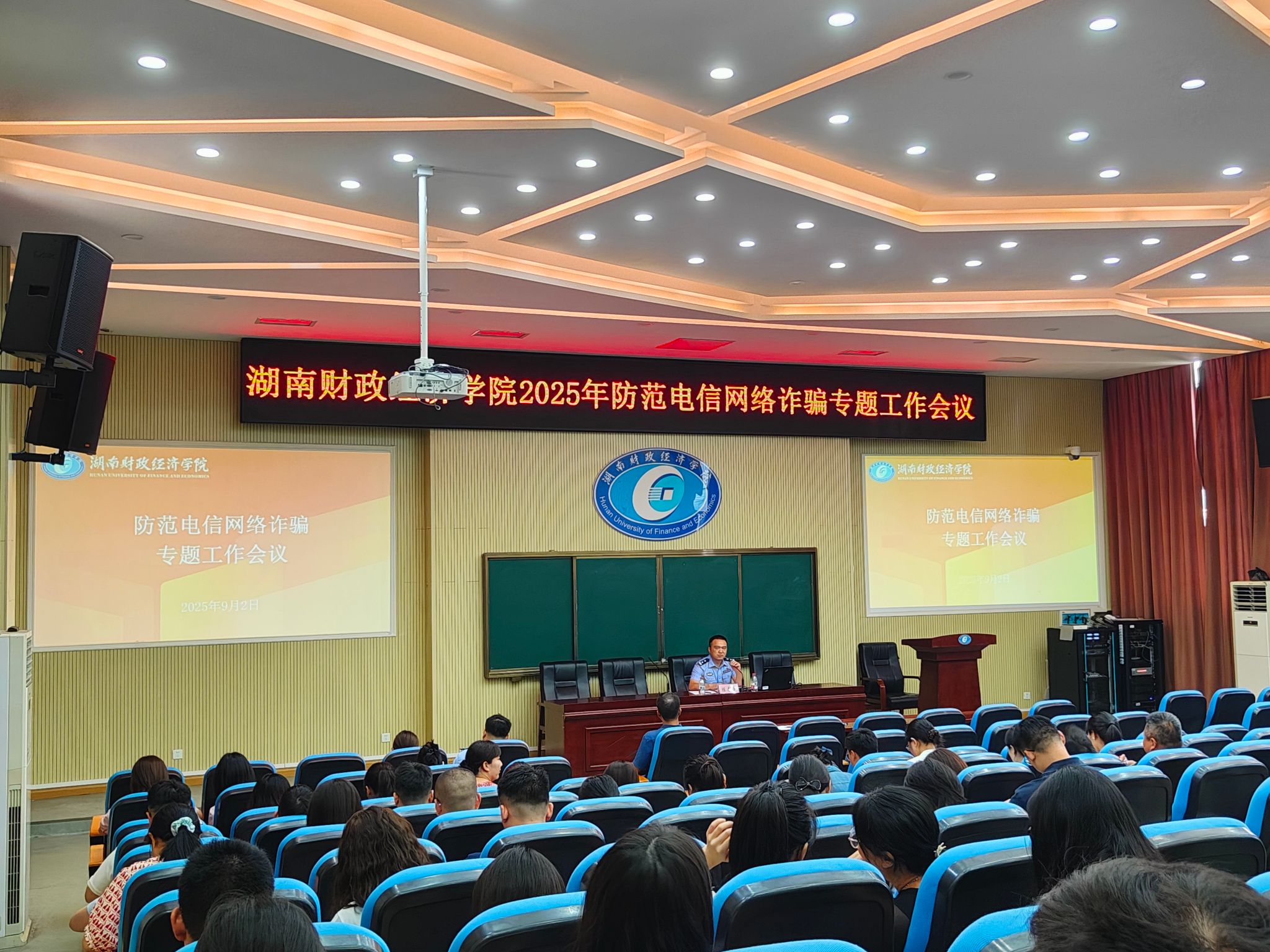 为持续推进平安校园建设,进一步筑牢校园电信网络诈骗“防护墙”,全力守护师生财产安全,学校于9月2日上午组织召开了学工系统防范电信诈骗专题会议,邀请了咸嘉湖派出所副所长陈春红为各学院学工办主任、全体专职辅导员普及防范电诈相关知识。