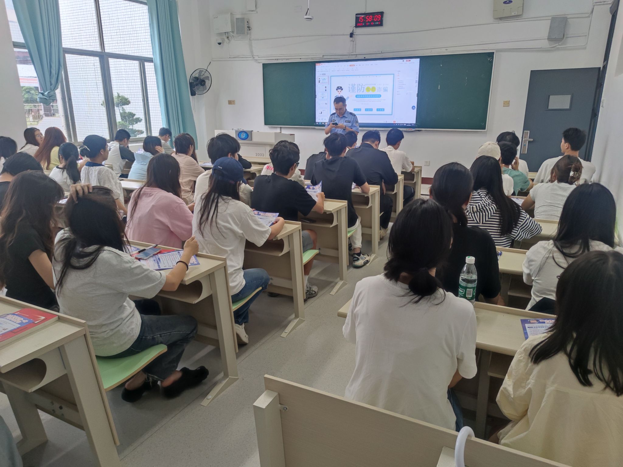 为切实提高beat365官网学生防范电信网络诈骗的意识和能力,9月19日,学校保卫部携手咸嘉湖派出所深入开展“反诈宣讲进班会”活动,通过民警讲解案例、互动答疑等形式,为同学们送上生动的反诈“必修课”。