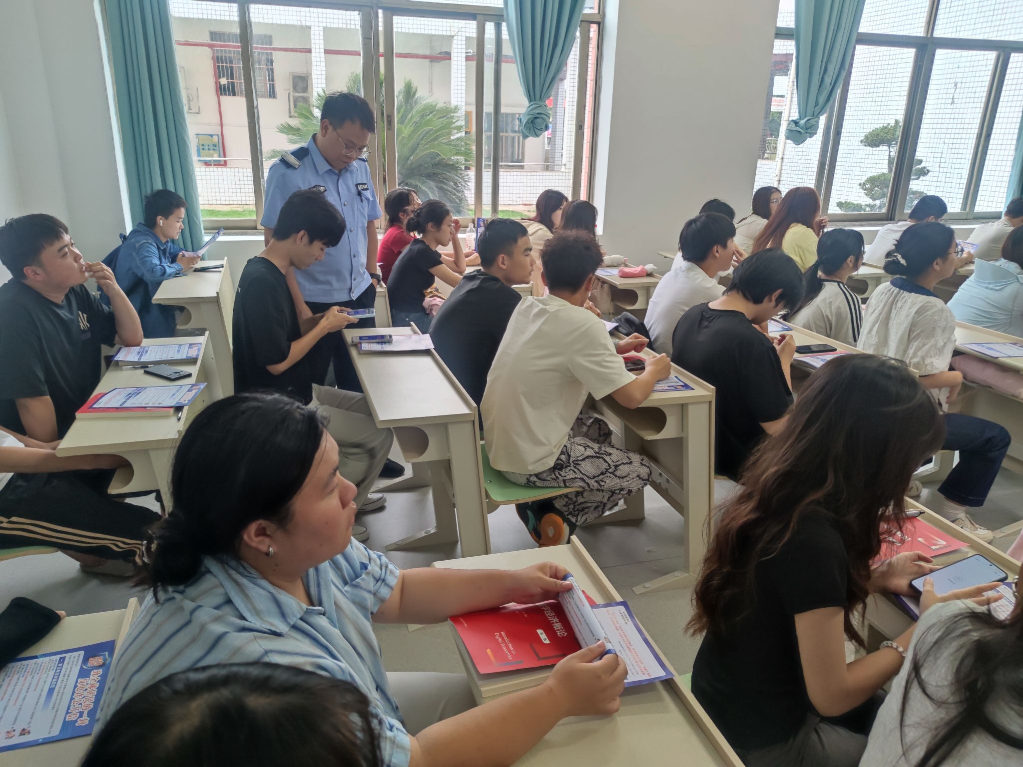 在2024级国贸厚生班和2024级经济学一班的主题班会中,民警结合真实案例,重点讲解了刷单返利、冒充客服退款、游戏装备交易、奖学金诈骗等学生群体高发的诈骗类型,揭示了“高额回报”“索要验证码”“点击陌生链接”等常见诈骗套路;同时提醒同学们,务必保护好身份证号、银行卡密码、短信验证码等个人信息,不向陌生人转账,遇可疑情况及时联系家长、老师或拨打报警电话。在宣讲中,民警还通过发放反诈宣传单、模拟情景问答、填写反诈问卷等方式,引导学生主动识别诈骗陷阱,增强自我保护能力。