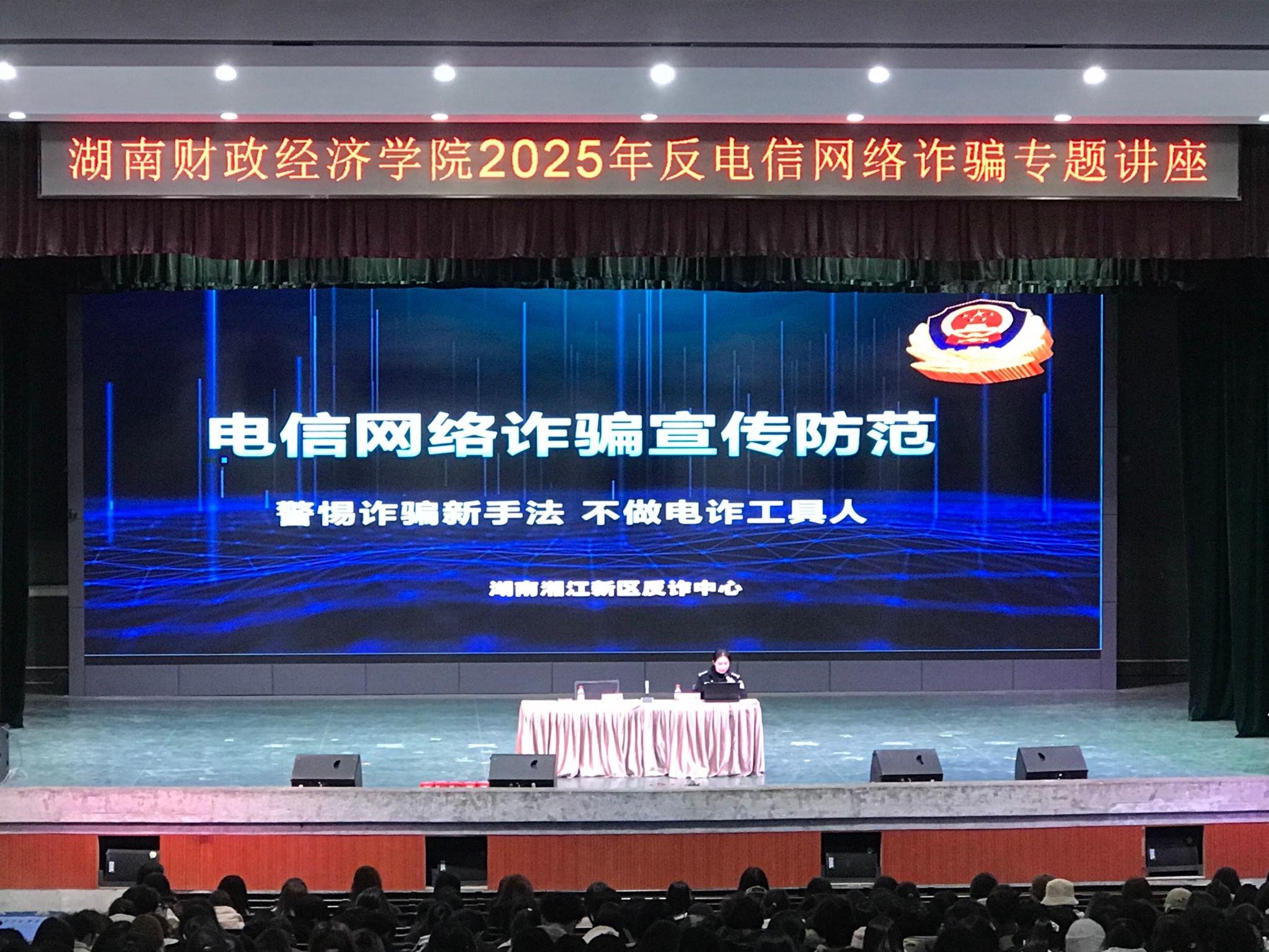 针对当前电信网络诈骗高发,青少年易上当受骗的现状,学校保卫部、团委联合湘江新区统战工作部、公安局等部门,以“青春无诈,平安新区”为主题,邀请了湘江新区公安局反诈中心余之洋警官带领同学们一起学习反诈知识。余警官结合办案经验,以真实案例拆解“冒充客服”“游戏交易”“刷单返利”等高发诈骗套路,清晰呈现诈骗分子的诱骗全过程。她提炼的“三不一多”反诈口诀,演示诈骗电话查询、反诈求助等实用技巧,让师生在身临其境中掌握防范方法,切实筑牢反诈“防火墙”。