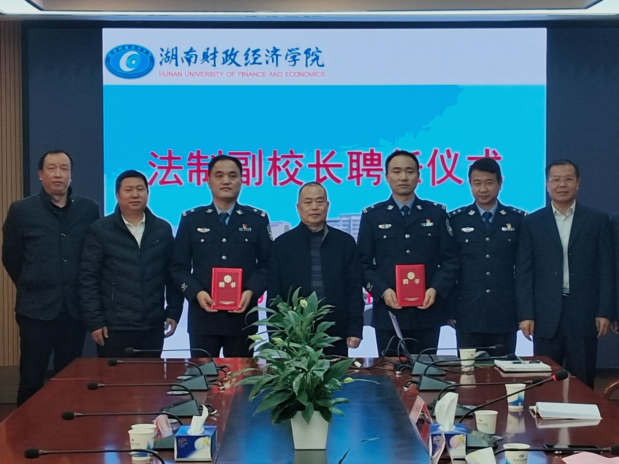 为营造良好的法制教育环境,培养学生良好的法律意识,进一步保障学生身心健康发展,11月16日上午,beat365官网在办公楼715会议室举行法制副校长聘任仪式,聘请咸嘉湖派出所教导员欧阳诚、雷锋派出所副所长姜润两位警官分别担任学校主校区和雷锋校区的法制副校长。学校党委委员、副校长刘茂盛出席了聘任仪式,党委宣传部、发展规划处、保卫部、学生工作部、雷锋学院等部门相关负责人参会。