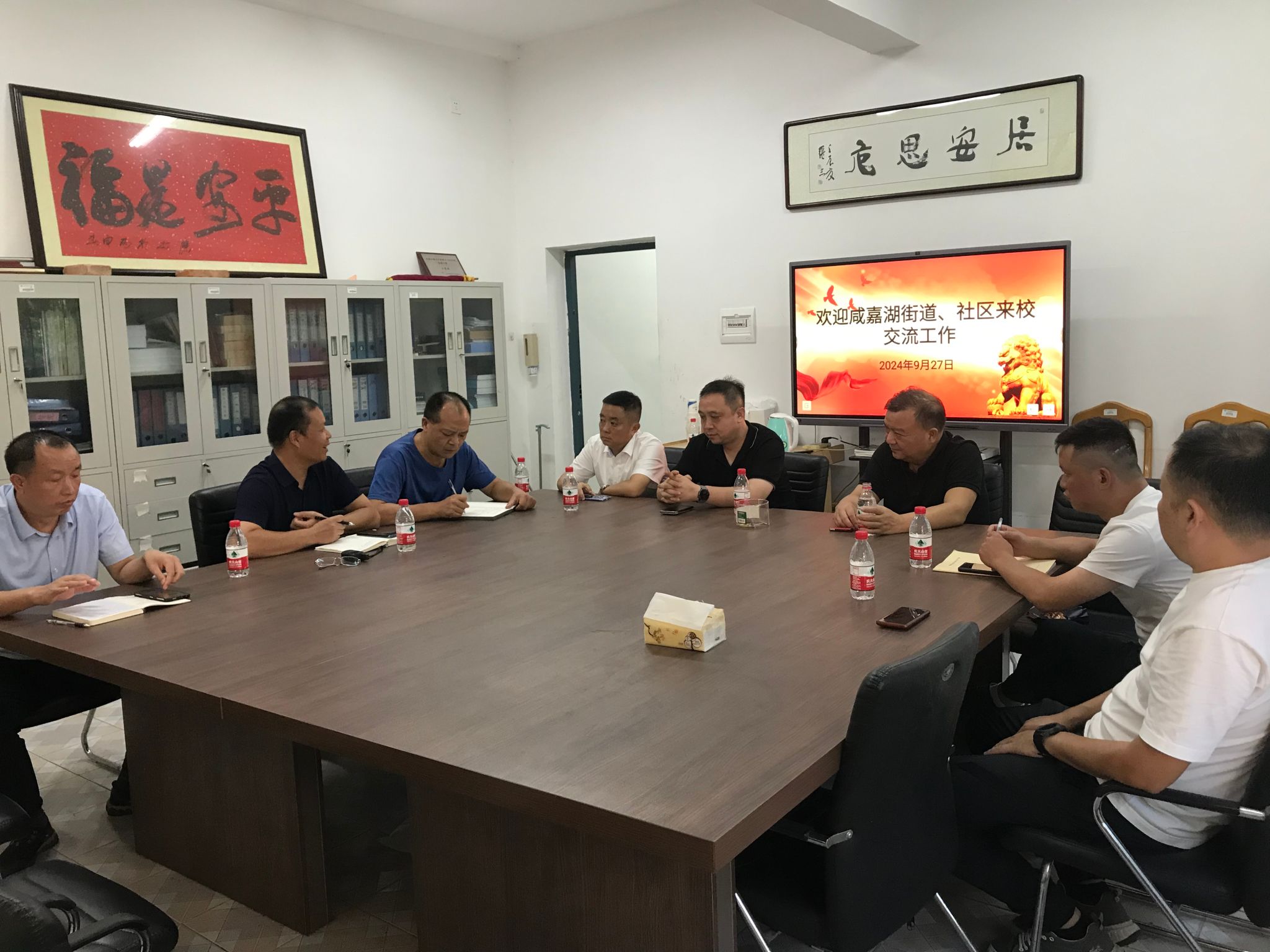 2024年9月27日,咸嘉湖街道政法委书记谭彬,咸嘉湖街道工委委员、办事处副主任黄巨,街道综治办主任朱军和西大门社区书记冯志锋等来beat365官网检查指导节前安全稳控工作,与保卫部领导班子和各科室负责人开展座谈。
