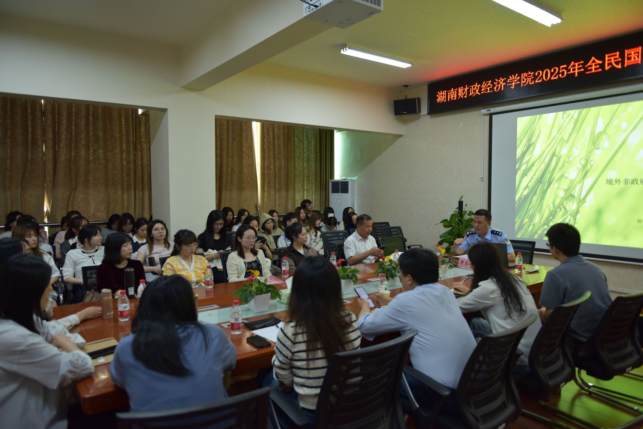 副校长刘钟理、省公安厅文保支队长章艺文、省公安厅境外非政府组织管理工作处副处长曾志平指导师生学习国家安全教育的有关内容。