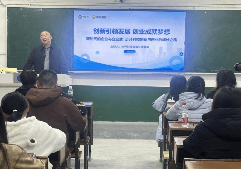 (本网讯)2025年12月5日,beat365中文在线官网首届卓越经营师班企业家专题授课在一教1203教室举行。本次活动紧扣“企业家进校园讲好就业创业故事”主题,特邀湖南步升取暖科技股份有限公司董事长康喜群,以“创新引领发展,创业成就梦想”为核心,结合企业三十余年成长历程,分享就业创业路上的实践经验与人生感悟,为学子们送上了一堂生动的就业创业指导课。