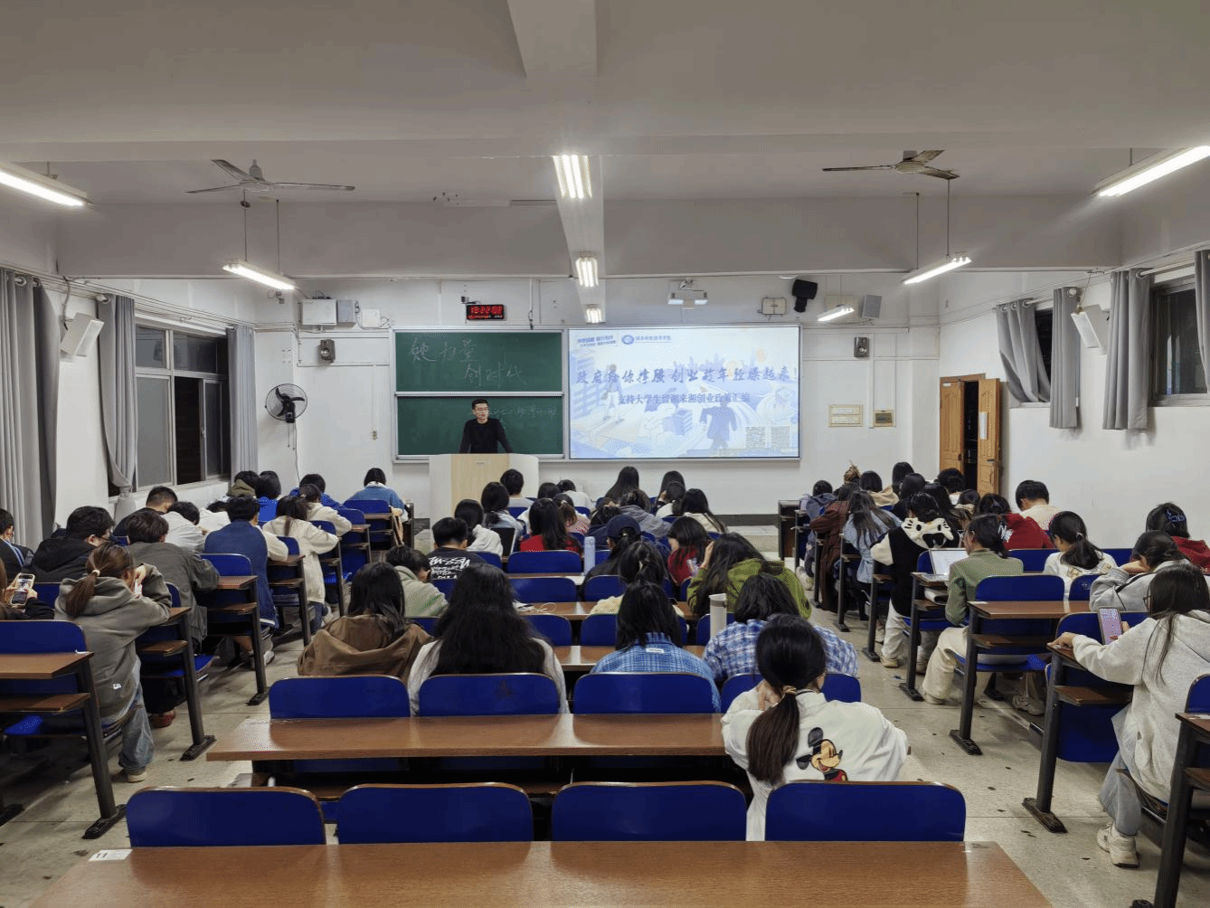 班会现场,老师们深入剖析湖南省大学生创新创业政策,结合“女大学生创业”这一特色主题,分享了学校女大学生的创业典型故事,鼓励学生依托学校优势专业,深挖专业潜能,将个人创新创业理想与社会需求紧密相连,在创新创业的实践浪潮中奋力拼搏,实现人生价值。班会还开展了“金种子杯”赛事动员,宣讲“金种子杯”创业大赛赛制、赛道设置及奖励机制,致力于挖掘和培育更多创新“金种子”,激发学生踊跃参赛的积极性。