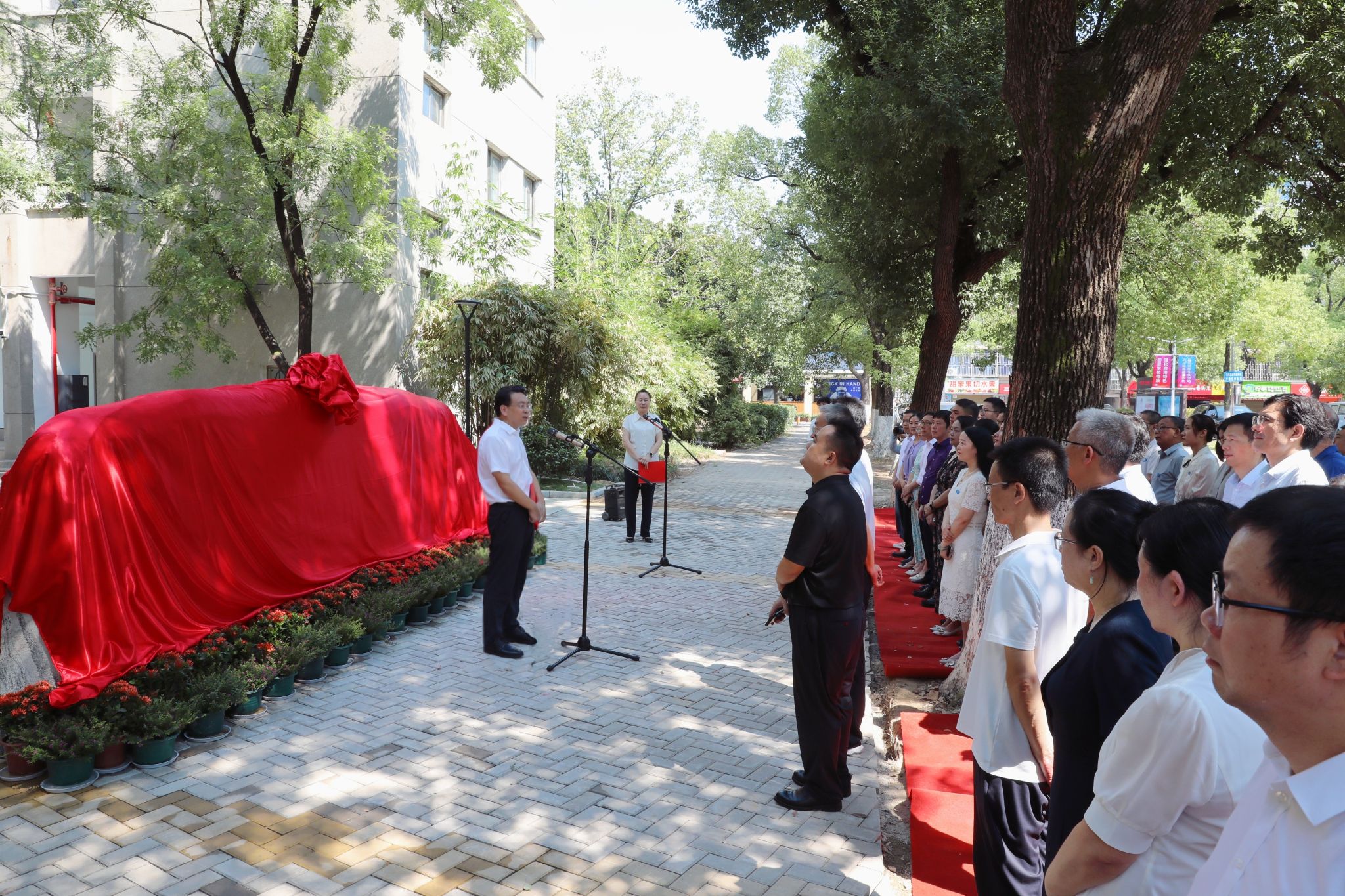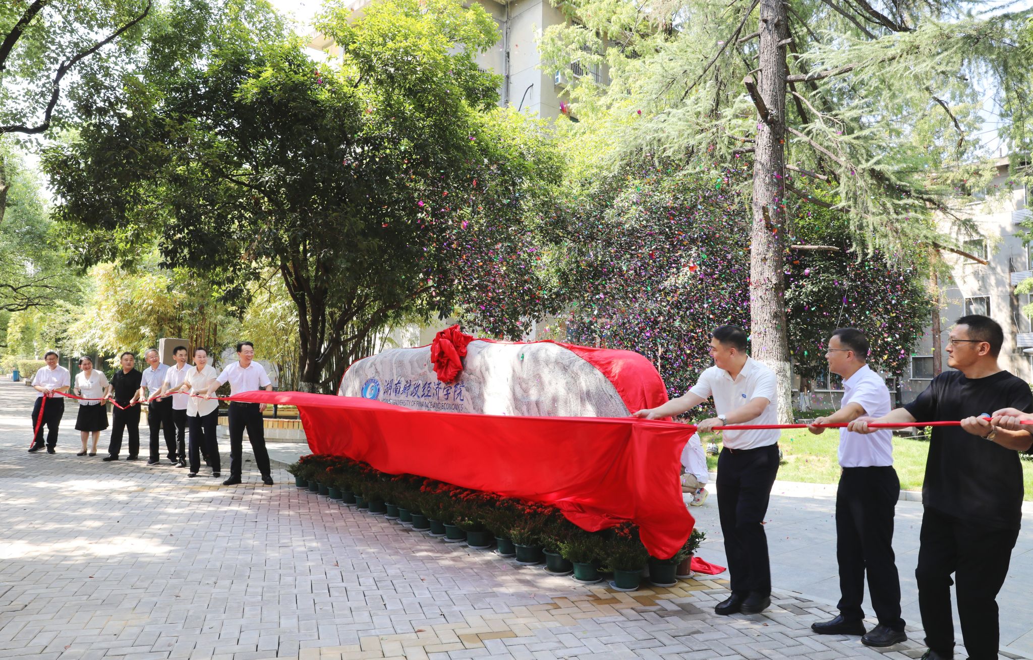 仪式上,全体校领导与校友代表共同为文化石揭牌。红绸缓缓拉下,礼炮齐鸣,现场响起热烈掌声,这方承载着学校期许与校友深情的文化石正式亮相。