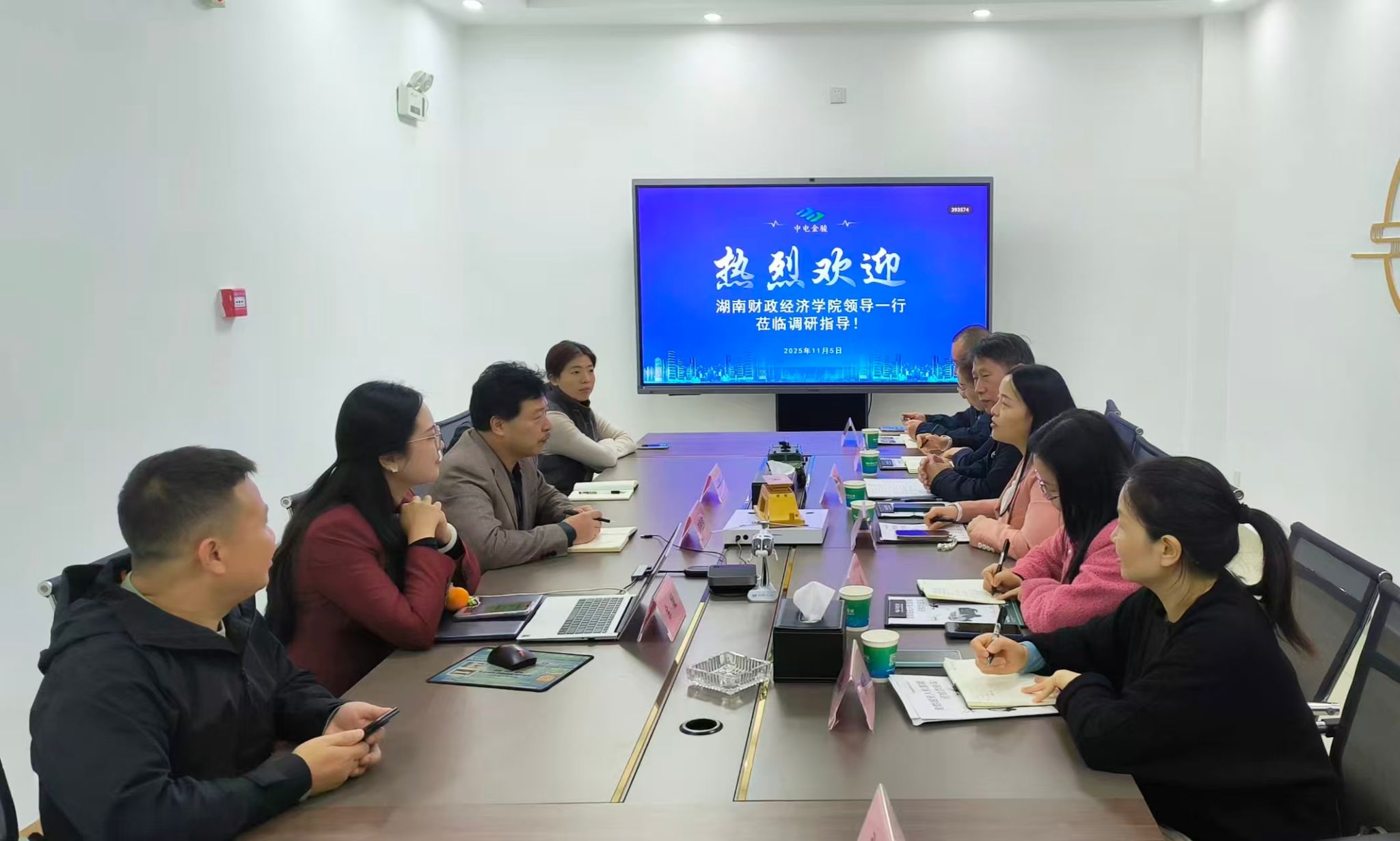 (本网讯)为进一步深化校企合作,拓宽就业创业渠道,11月5日上午,beat365官网创新创业与人工智能学院直属党支部书记余华、会计学院党委书记戴恩湘共同带队,前往校友所在企业湖南中电金骏科技集团有限公司开展走访交流活动。