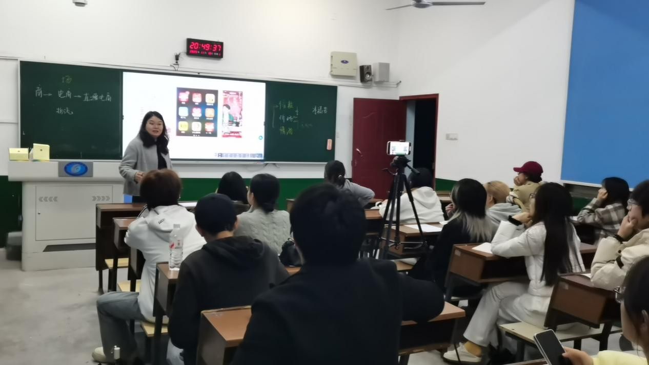 课堂上,毛璐璐老师从直播电商的发展历程切入,深入剖析了“人、货、场”三要素在直播中的核心作用,并结合“李福贵”“李佳琦”等真实案例,阐述了情绪价值在直播带货中的重要性。她指出,当前直播行业正从“价格战”转向“价值战”,鼓励同学们结合自身兴趣与专业背景,找准赛道、打造个人IP。