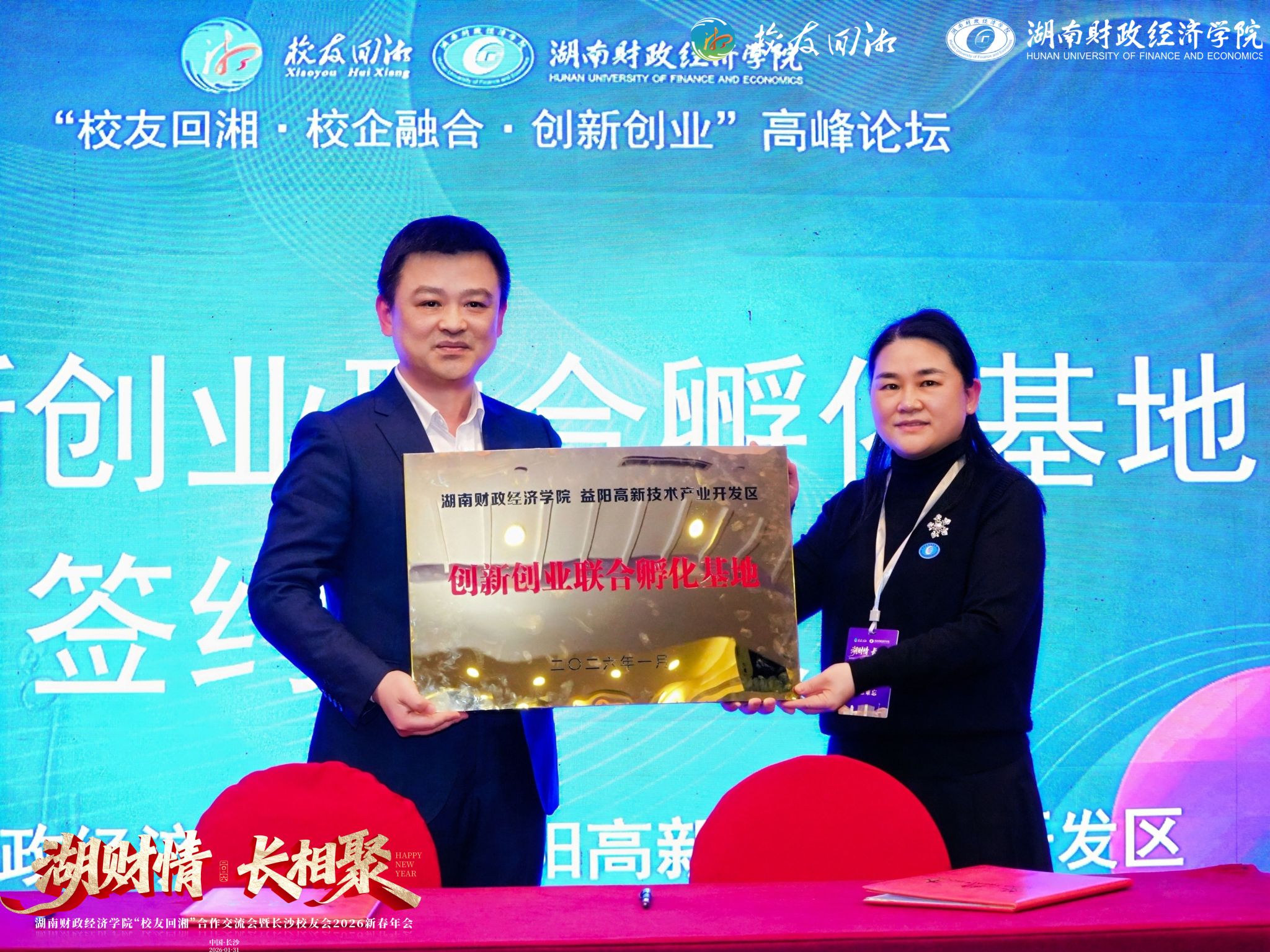 论坛期间,学校与益阳高新区签署合作框架协议,共建“创新创业联合孵化基地”,并为9家校友企业授予“实践教学基地”牌匾,标志着校地、校企合作迈入实质性推进阶段。副校长李小娟、黄渊基分别为基地授牌。