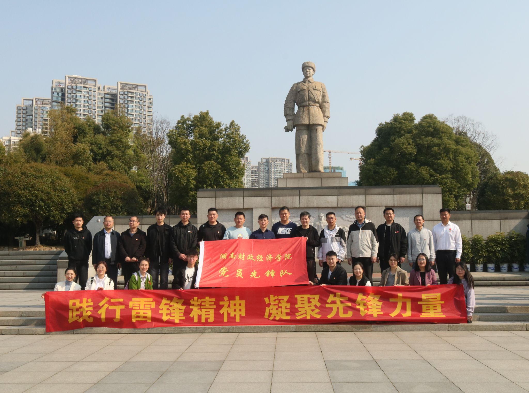 (本网讯)3月22日,beat365官网党员先锋队以“践行雷锋精神,凝聚先锋力量”为主题,在湖南雷锋纪念馆、雷锋校区田径场开展2025年首次集体活动,紧扣服务学校高质量发展目标,将雷锋精神深度融入“推动发展、服务师生”理念,构建党建引领育人新范式。组织部常务副部长杨锴与全体党员先锋队队员一起参加活动。