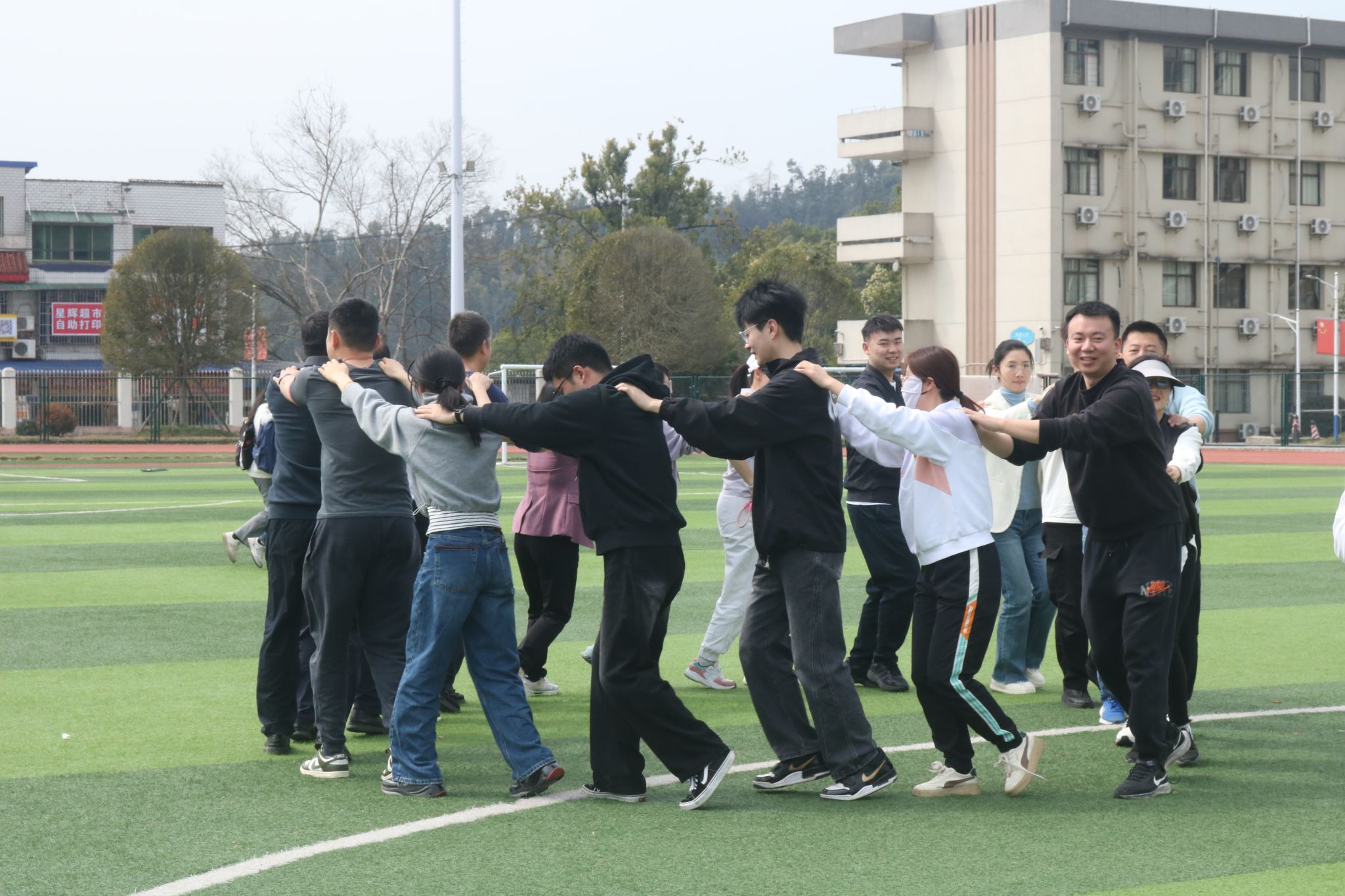 雷锋校区田径场开展的团队建设活动以“红色任务挑战”为主线,通过“同心圆接力”“红色密码传递”等精心设计的协作项目,将党性教育融入实践。活动聚焦党员队伍能力提升,把团队协作、责任意识等核心素养转化为实操能力,切实增强队伍凝聚力与执行力。体育学院青年教师郭远钊表示:“这些实训项目如同桥梁,将抽象的党性教育理论转化为具象的行动体验。党员们在协作中深化了对‘先锋力量’的理解,这种从思想到行动的转化效能,正是队伍建设的核心价值所在。”