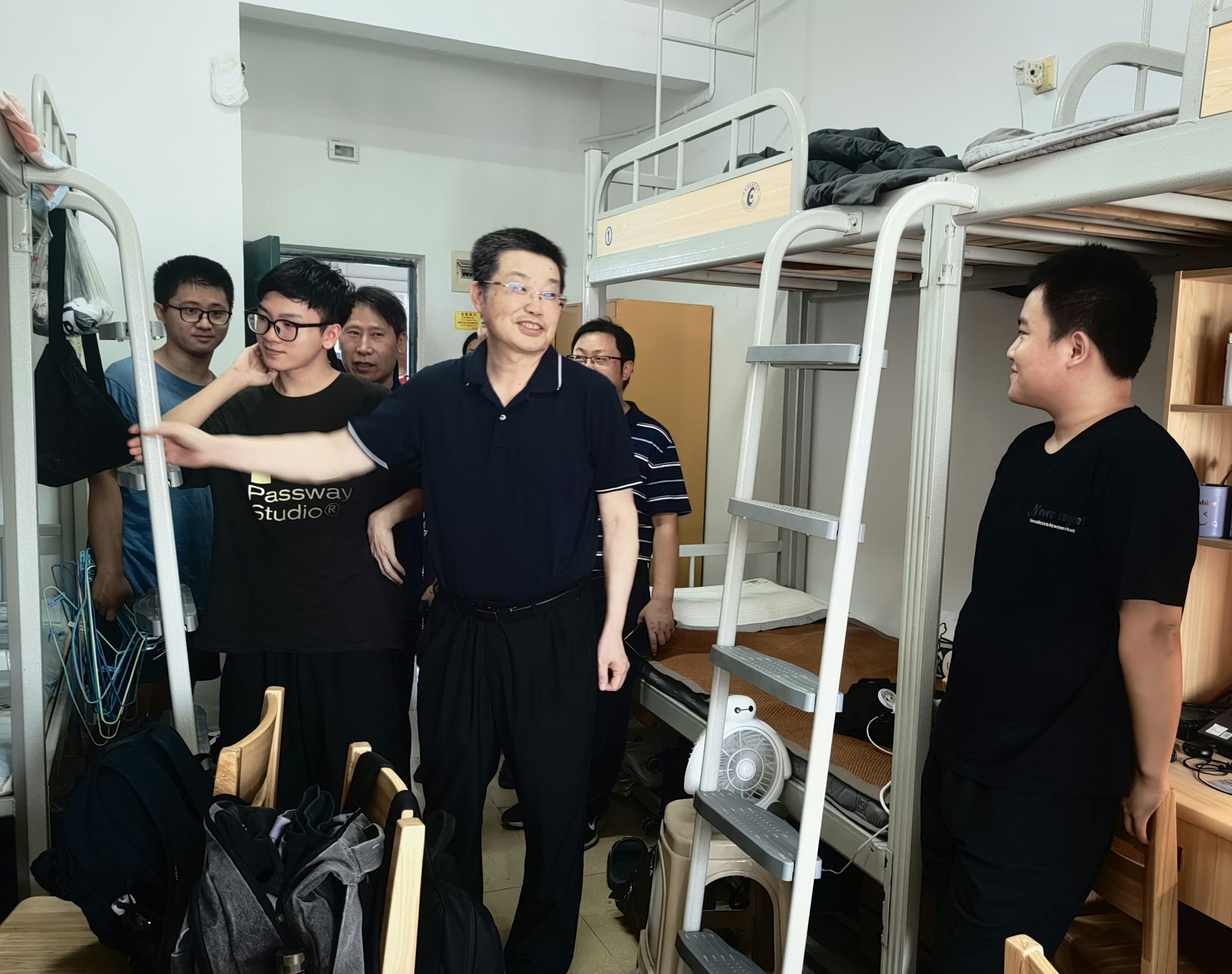 校党委委员、宣传统战部部长文炳勋到学生宿舍了解搬迁情况 彭兰/摄