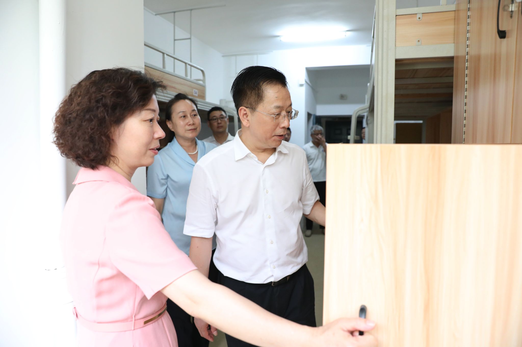 在校党委书记杨兰英、党委副书记苏玲的陪同下,夏智伦走进提质改造后的学生宿舍,仔细察看硬件设施和环境卫生状况,要求学校加强学生宿舍日常管理,保持室内通风透气、整洁卫生,聚焦消防安全、用电安全等方面强化隐患排查整治,防范安全事故发生。在学生寝室,校领导们详细了解、认真查看搬迁情况,叮嘱有关部门要仔细排查学生宿舍区可能存在的安全隐患,做好学生入住后的生活保障工作,帮助同学们尽快度过磨合期、适应新环境。校领导们还与同学们亲切交谈,提醒大家要注意搬迁安全,自觉遵守宿舍管理规定,营造健康文明、整洁高雅的宿舍环境。