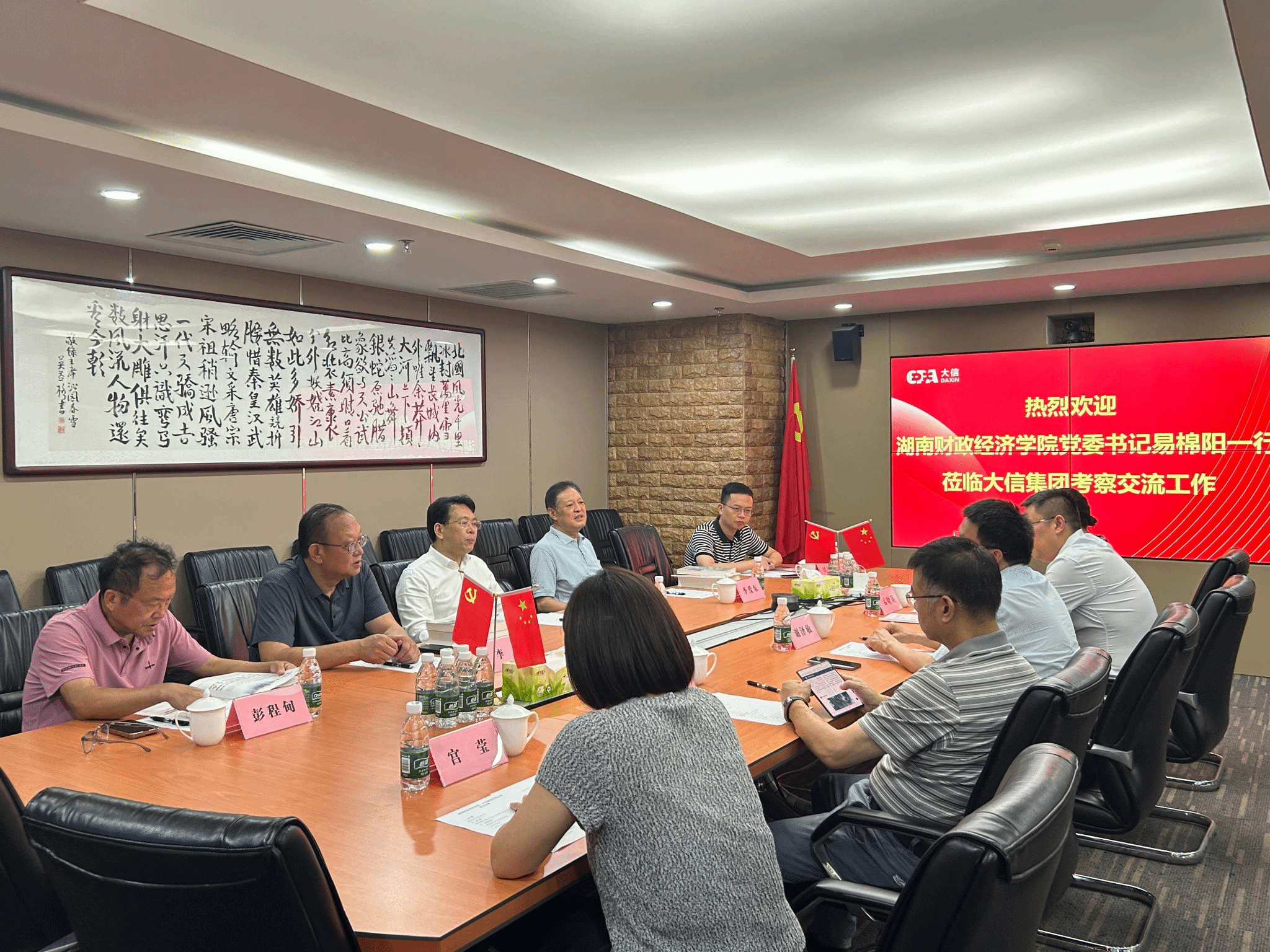 (本网讯)7月5日,校党委书记易棉阳率继续教育学院、科研处相关负责同志走访大信会计师事务所,与1984级财政学专业校友、事务所董事长谢泽敏等企业高管座谈交流。