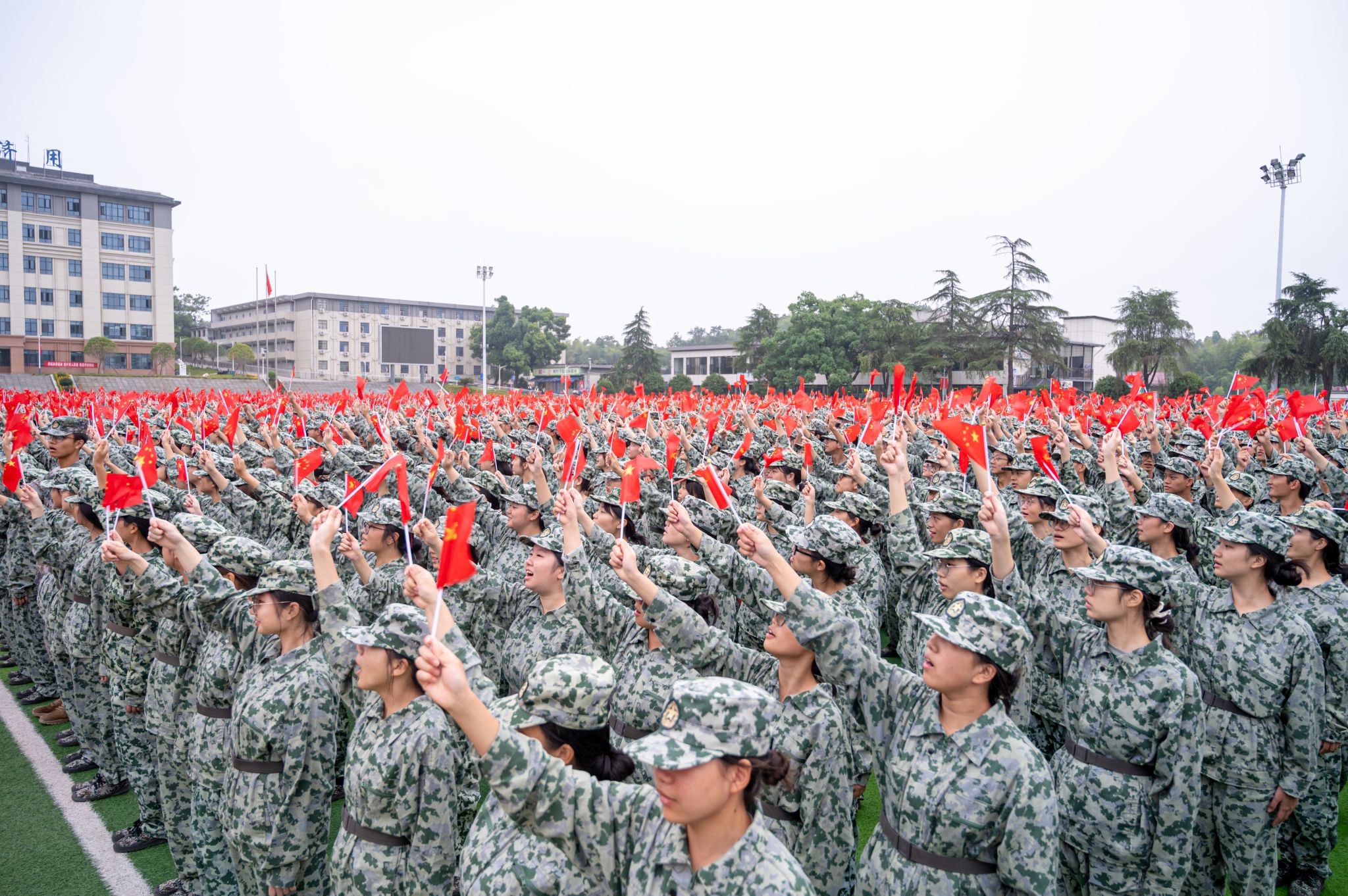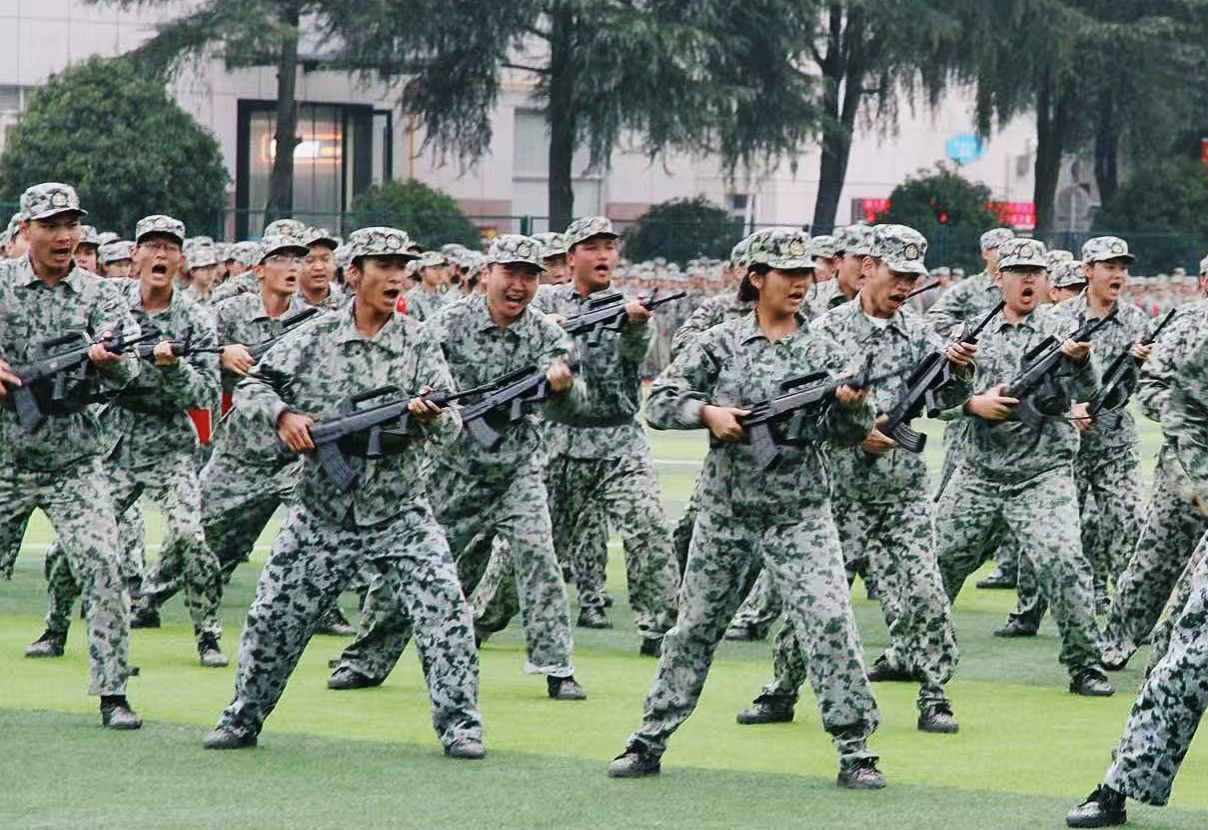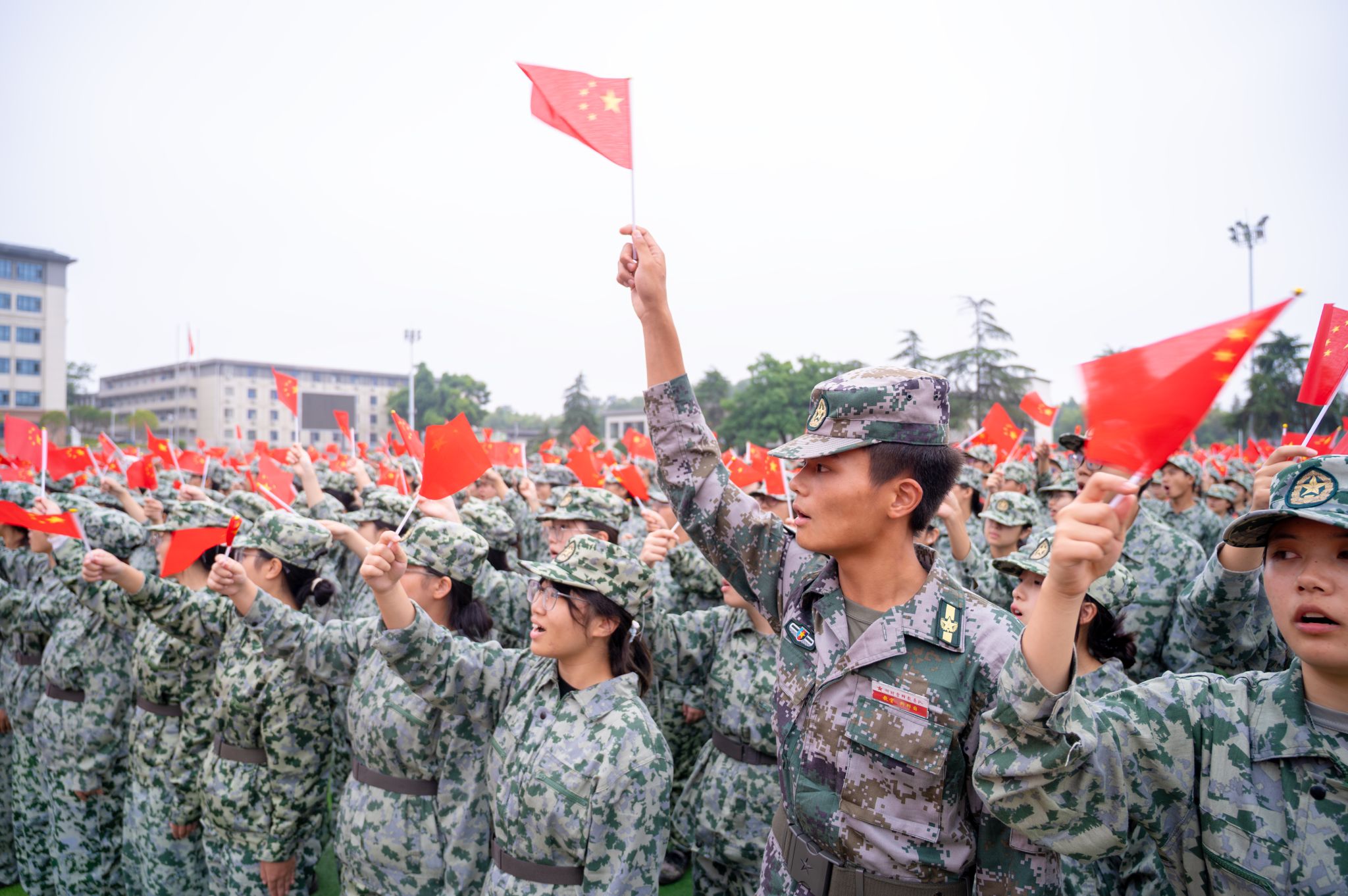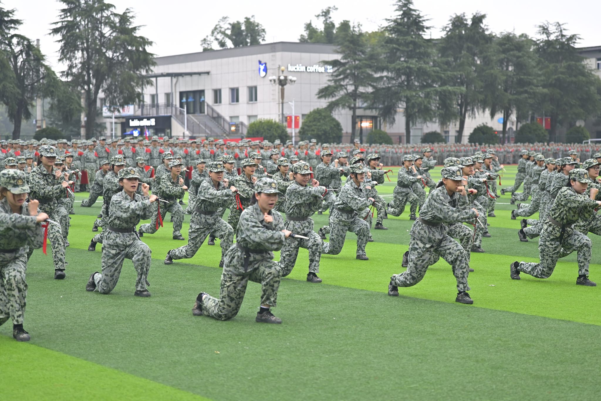 历经14天骄阳与风雨的洗礼,2025级学子完成了从青涩到坚韧的蜕变。军事训练成果汇报表演中,31支分列式方阵步伐铿锵、口号嘹亮,依次正步通过主席台,展现昂扬风貌;擒敌拳方阵招式凌厉、气势如虹,匕首操、刺杀操方阵在战鼓声中迅猛出击,杀声震耳;2050名学生组成的文化方阵先后呈现出“雷锋”“正德厚生 经世济用”“我中国”“1933-2025”等图案与字样,齐声宣誓“请党放心,强国有我”,滚烫的誓言彰显着新时代青年的责任与担当。