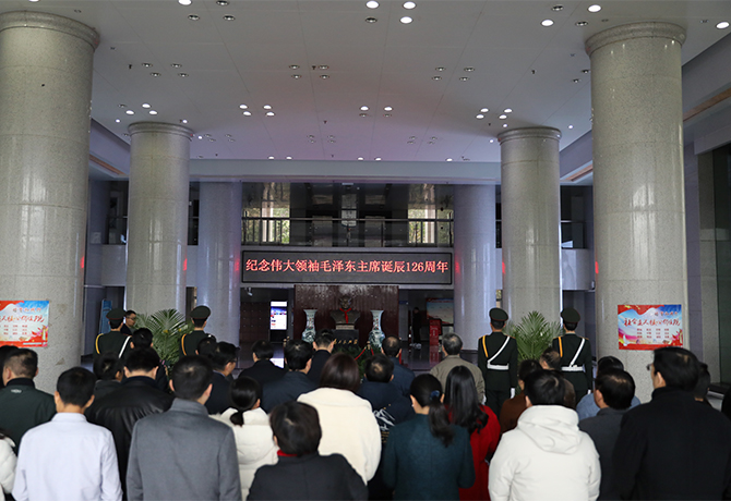 (本网讯)12月26日上午,学校在办公楼大厅举行“毛泽东同志诞辰126周年”纪念仪式。在校校领导、副处级以上领导干部、师生代表参加了仪式。活动现场 在庄严的国歌声中,仪式拉开序幕。党委副书记晏金平、...