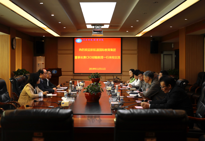 (本网讯)11月11日上午,新航道国际教育集团董事长兼CEO胡敏、总裁助理刘威、长沙留学公司总经理詹再宏一行来校交流,校长刘长庚、副校长樊晓平、刘建民在715会议室会见来宾并进行了洽谈。教务处、国际合作与交...