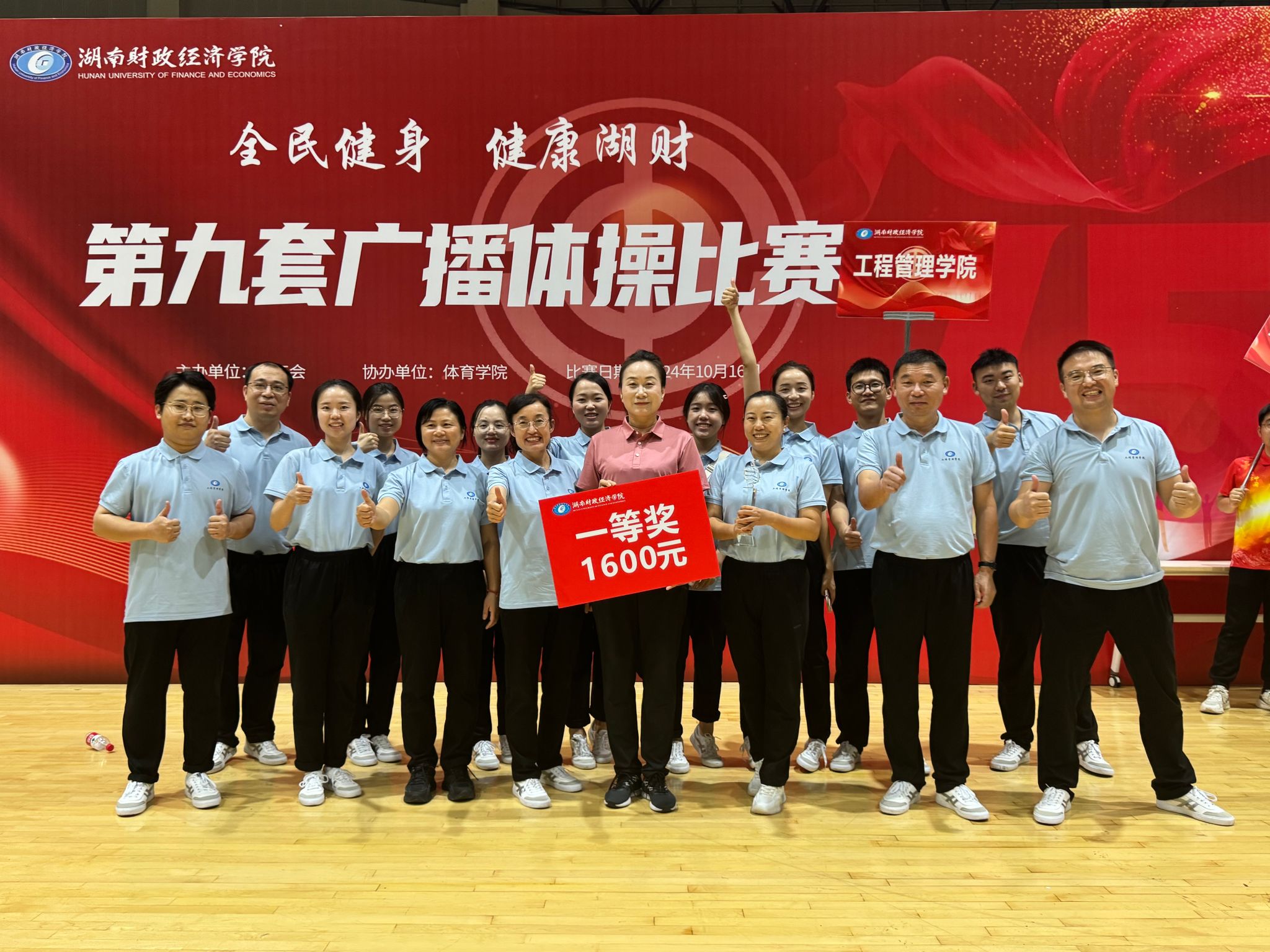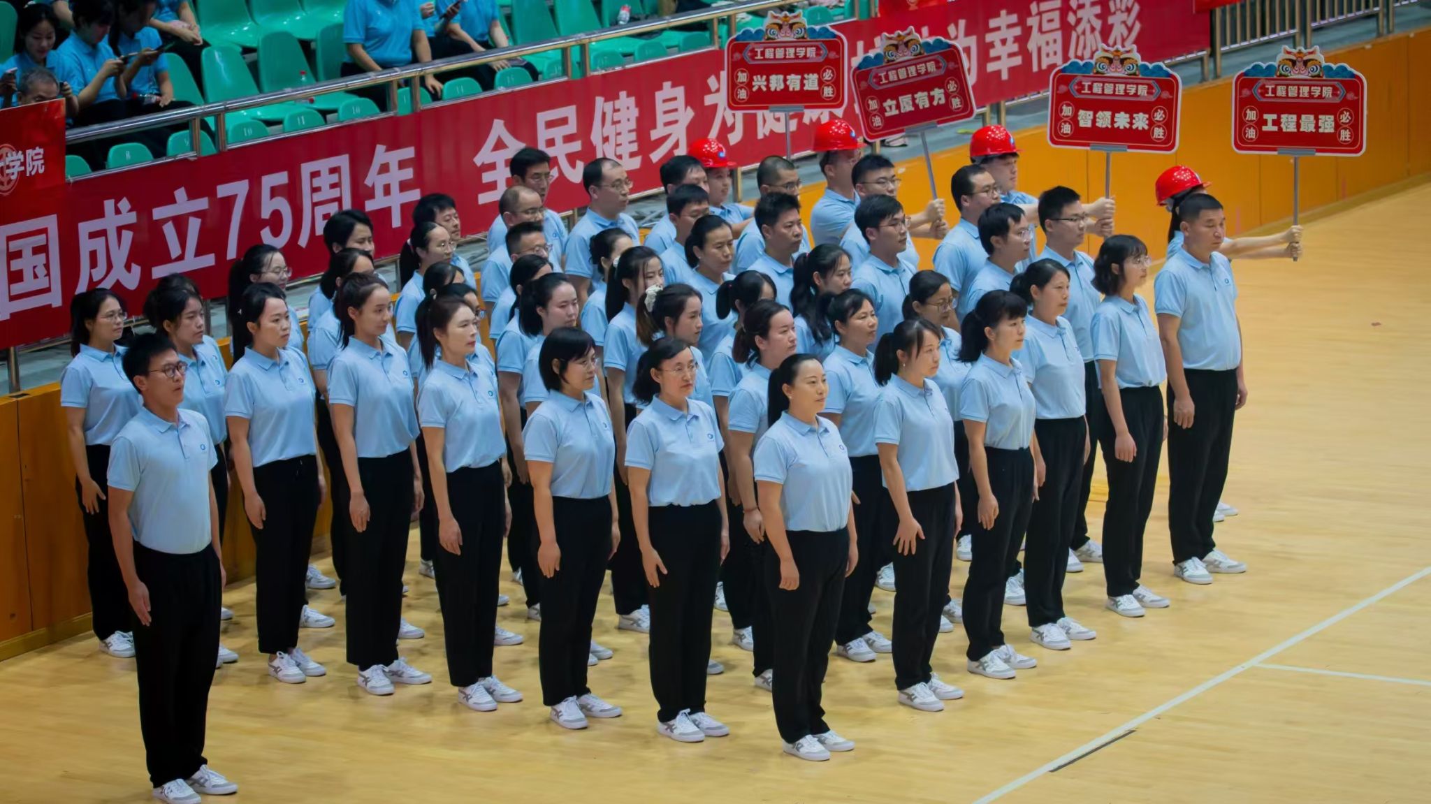 本次比赛院领导、工会高度重视和大力支持,在赛前准备阶段,院领导与工会精心组织,聘请专业体操教练指导训练,规范体操动作,教授技巧方法。上场前老师们彼此加油鼓气,入场时“兴邦有道、立厦有方、智领未来、工程最强”整齐有力的口号响彻云霄。比赛中,参赛教师们动作整齐划一,精神饱满,举手投足间充满了自信和快乐,将广播体操的力与美展现得淋漓尽致。最后凭借教师们的出色表现,我院取得了A组第一名的好成绩,用实际行动展现了工程管理学院教师们团结协作、积极向上、锐意进取的精神风貌。