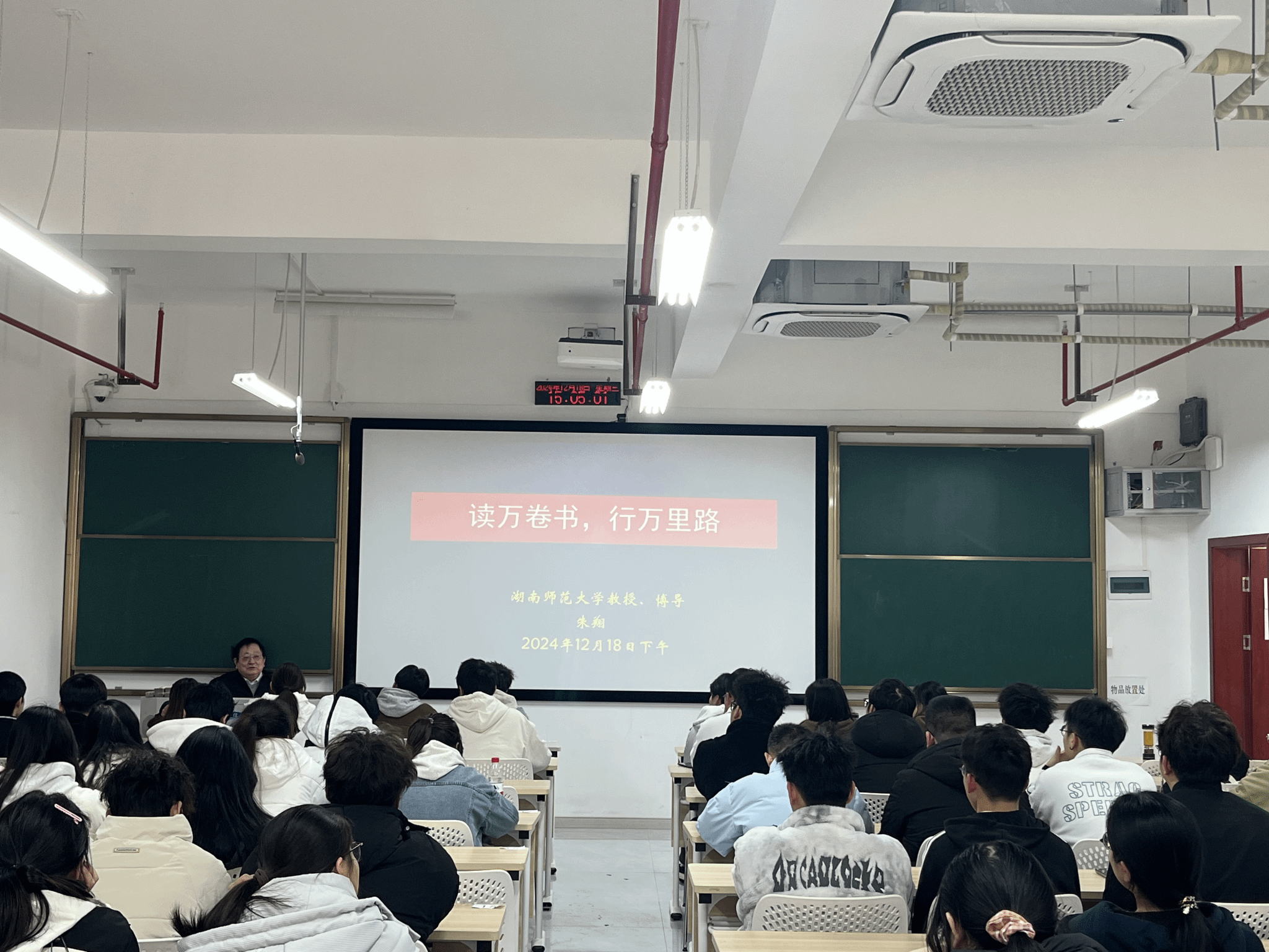 (本网讯)12月18日下午,全国模范教师、湖南师范大学朱翔教授来到雷锋书院,与100多名雷锋书院济用学馆的师生一起分享了学习和科研的经历。活动由工程管理学院副院长欧阳晓主持。
