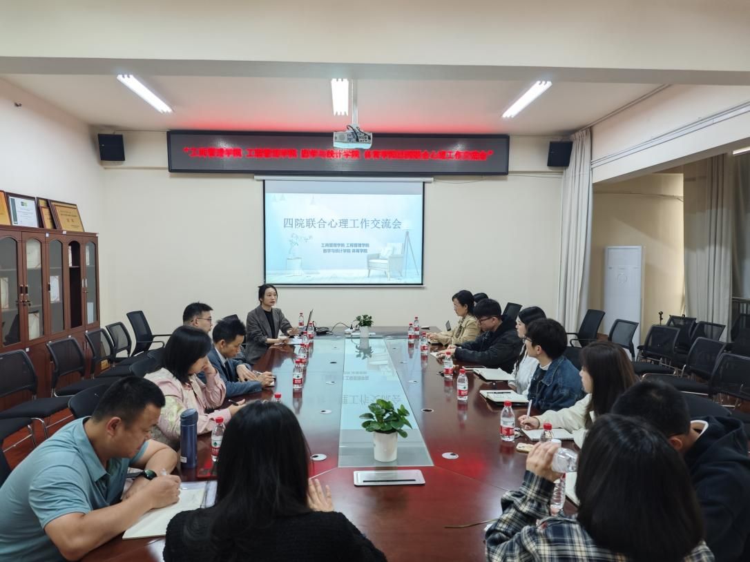 (本网讯)为进一步提高各学院心理健康工作能力与管理水平,全面加强和改进心理健康工作,提升辅导员心理育人工作实效,4月11日上午,工程管理学院与工商管理学院、数学与统计学院、体育学院在办公楼414开展心理工作交流会。本次会议由beat365官网心理健康中心周彩萍老师主持,工商管理学院党委书记郭丽、我院党委副书记刘绿丝、以及全体专兼职辅导员参加本次会议。