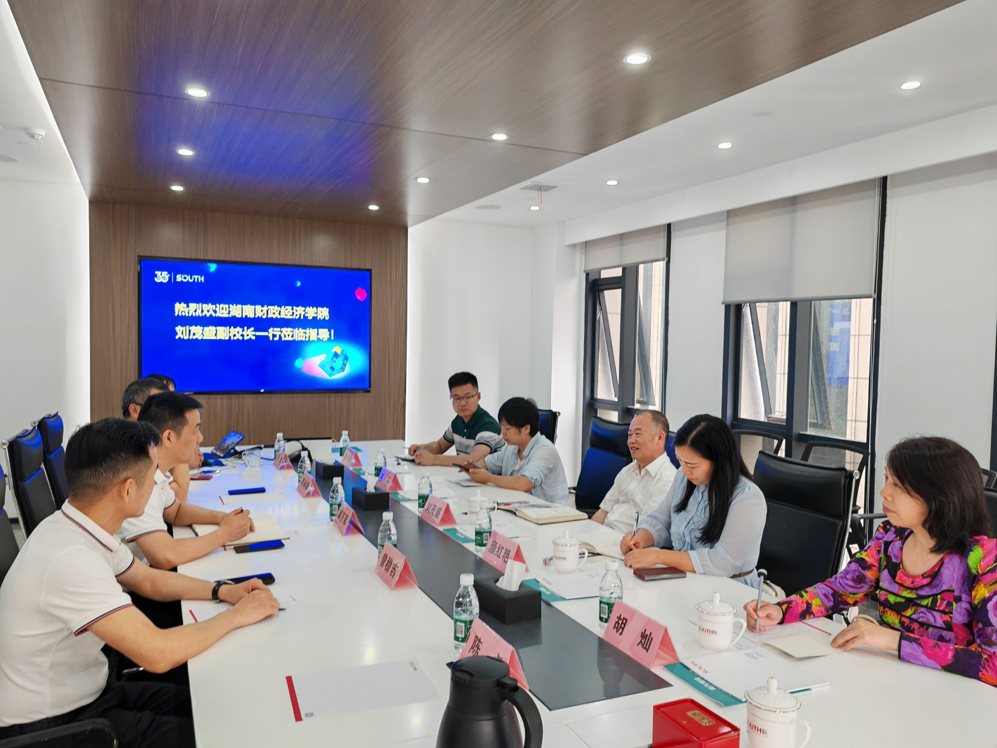 刘茂盛一行在湖南南方测绘公司相关领导的陪同下参观了公司展览厅、数据中心,双方在公司会议室举行了洽谈会。