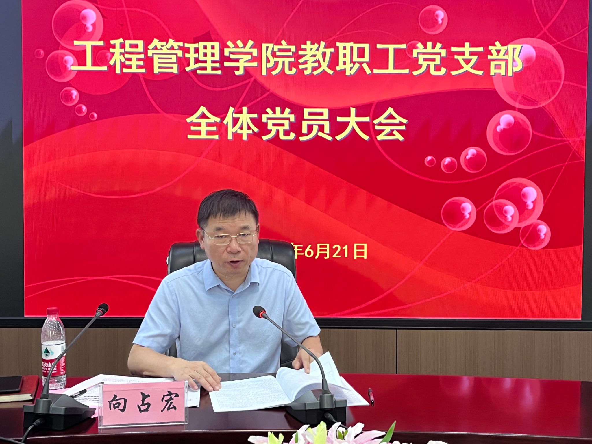 (本网讯)6月21日,工程管理学院教职工党支部召开全体党员大会。学院党委班子成员参加,会议由教职工党支部书记唐俊峰主持。