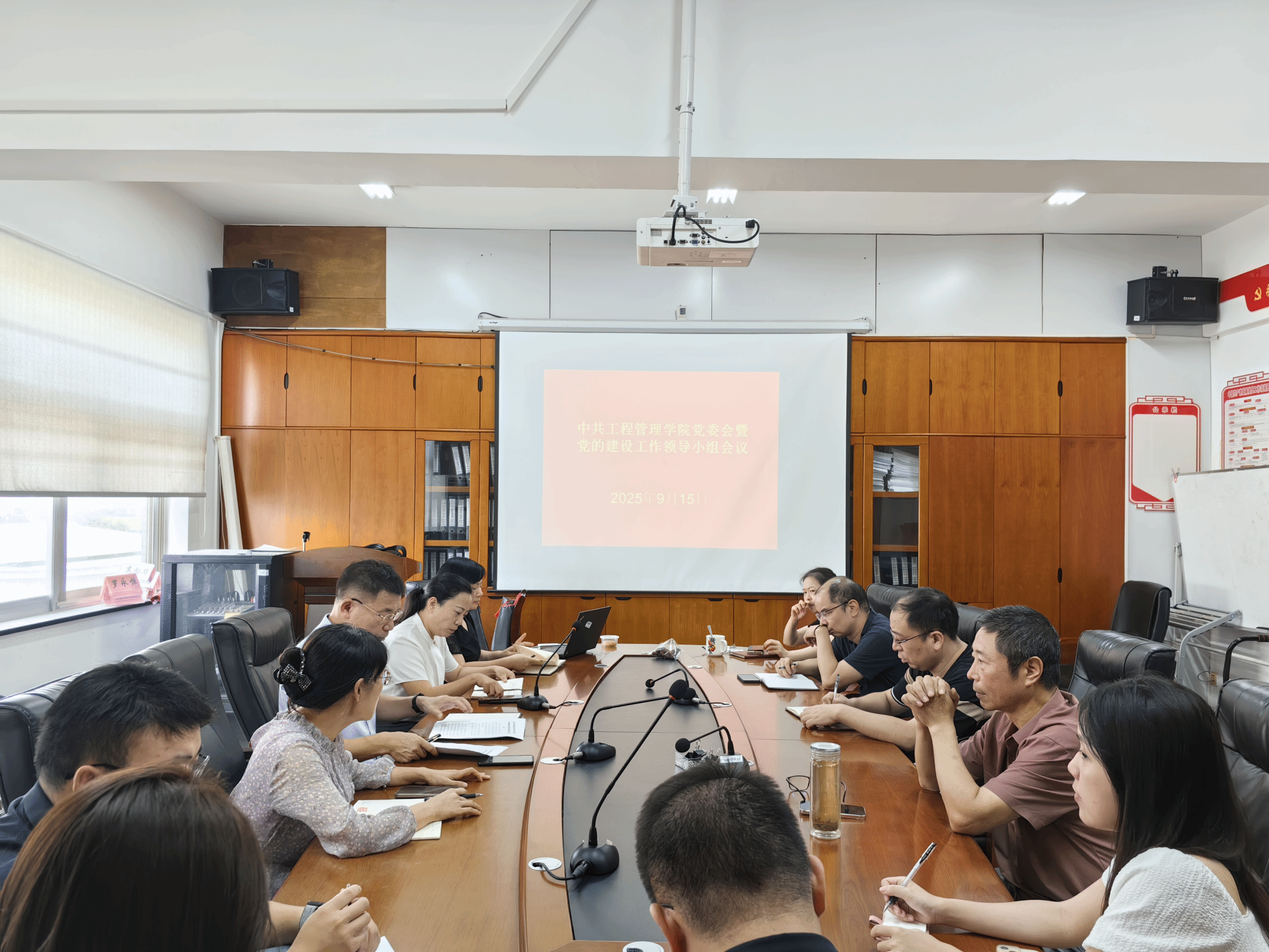 (本网讯)9月15日,工程管理学院党委召开党委扩大会议暨党的建设工作领导小组会议,传达学习习近平总书记关于深入贯彻中央八项规定精神学习教育的重要指示精神,全面落实中央、省委及学校党委党的建设工作领导小组会议部署要求,总结学院学习教育开展情况,研究部署巩固拓展学习教育成果、锲而不舍落实中央八项规定精神、推进作风建设常态化长效化重点工作。会议由学院党委书记向占宏主持,全体院领导、党委委员、各党支部书记、专职组织员及学院科级干部参加会议。
