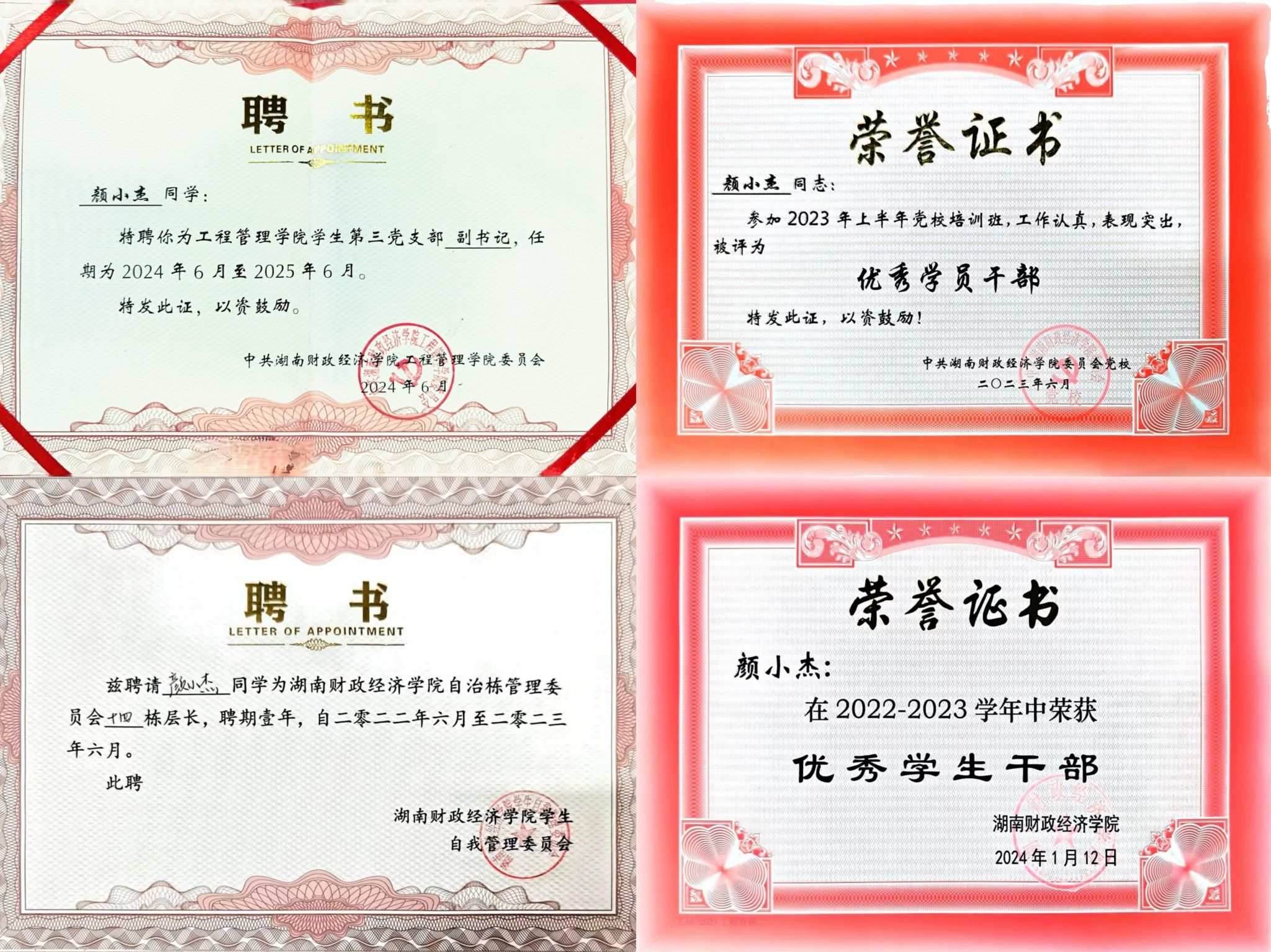 颜小杰,中共党员,beat365中文在线官网工程管理2021级本科生,研究生上岸长沙理工大学。曾担任beat365中文在线官网工程管理学院学生第三党支部副书记、工程管理学院2021级年级负责人、2021级工程管理二班班长等职务。在校期间荣获校级优秀学生奖学金、“三好学生”、“优秀学生干部”、“优秀志愿者”等多项荣誉,充分彰显其突出的综合能力。