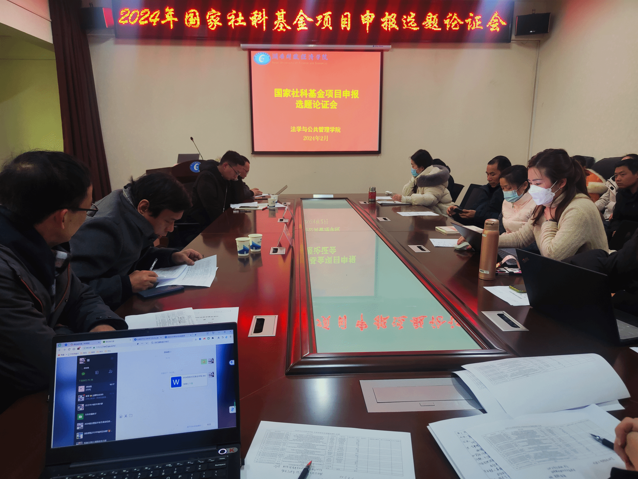 (本网讯)2月26日下午,学院2024年国家社科基金项目申报选题论证会在行政楼414-2会议室召开,会议由副院长姚德超教授主持,科研处处长李勇辉教授、副处长刘安长教授、学院2024年国家社科基金项目申报人以及已立项或结项国家社科基金项目的老师参加了会议。