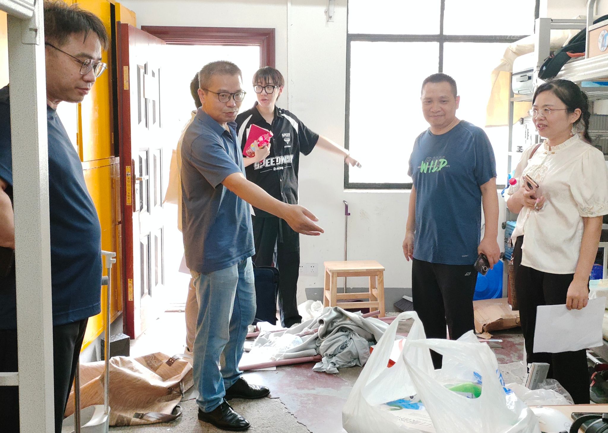 搬迁任务繁重艰巨,学院领导高度重视,学院党委书记何四海、副书记李茂华一行来到学生宿舍,与学生亲切交谈,仔细询问入住情况,详细解答学生疑问,并细心叮嘱学生搬迁过程中注意人身财产安全。