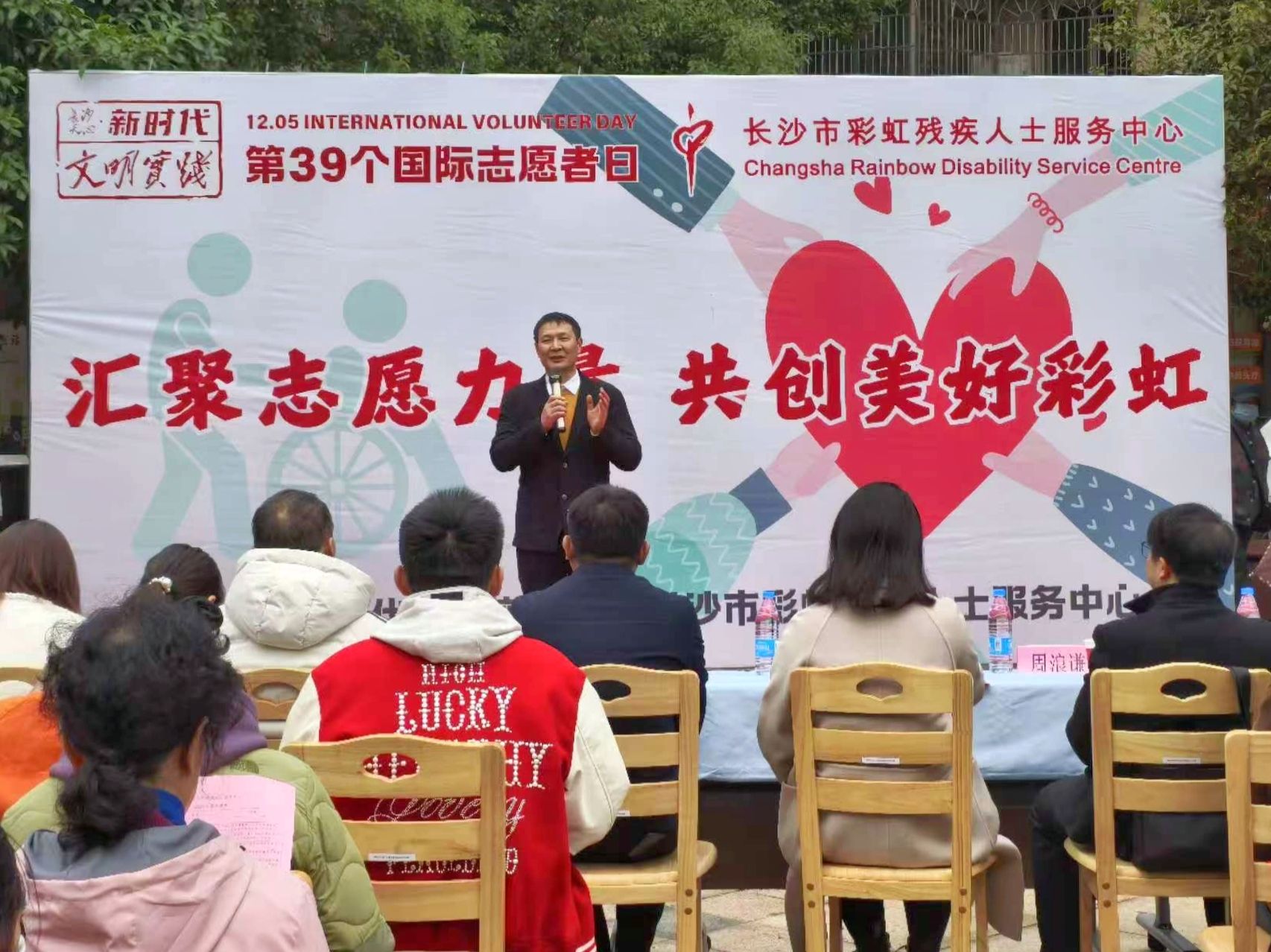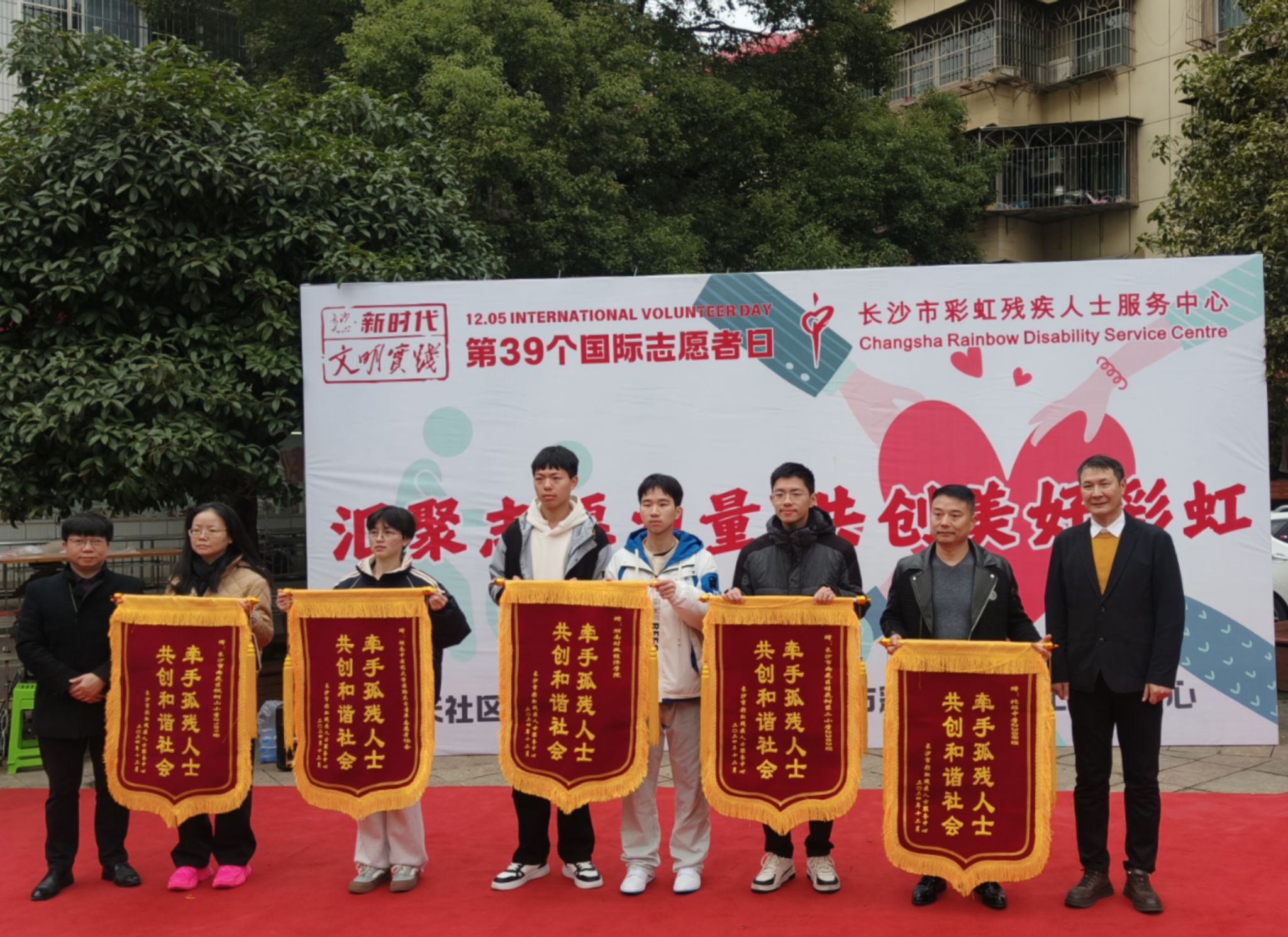 (本网讯)12月5日是国际志愿者日,为大力弘扬“奉献、友爱、互助、进步”的志愿者精神,应长沙市彩虹残疾人士服务中心的邀请,当日上午9点,法学与公共管理学院辅导员何梦丽携劳动与社会保障一班曾睿康、刘文旭、黄诗媛、龚志鹏四位志愿者前往新开铺新天小区晨光中心参与“爱心汇聚,志愿同行”志愿者日庆祝活动暨2024年爱心团队表彰大会。