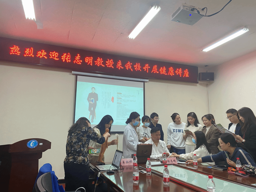 在讲座结束后,张教授通过“望、闻、问、切”等方式对现场教职员工进行了义诊,并辅助以针灸治疗。