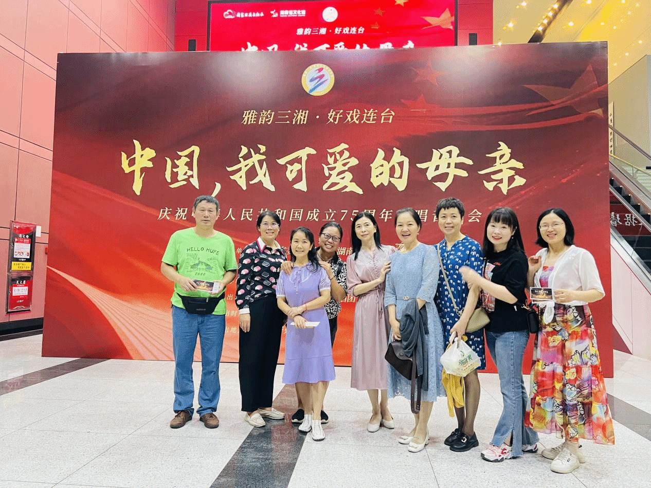 在中华人民共和国成立75周年之际,协会组织会员二十余人赴湖南音乐厅现场聆听雅韵三湘·好戏连台“中国,我可爱的母亲”庆祝中华人民共和国成立75周年合唱音乐会。本场音乐会由湖南省文化馆群艺合唱团倾情呈现,现场演唱了《中国,我可爱的母亲》《共和国之恋》《我爱你中国》《映山红》和《潇湘神韵》等经典曲目,以丰富的音乐表现力和感染力,抒发了强烈的民族自豪感,把最深的祝福献给祖国母亲,带给观众一场高水平的艺术盛宴,现场不时响起热烈的掌声和欢呼声。演出最后,台上台下高声齐唱《我和我的祖国》,将整台合唱音乐会的气氛推向高潮。
