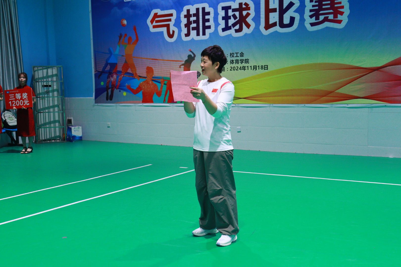 (本网讯)11月18日,主校区体育馆内热闹非凡,以“凝心聚力迎评估 挺膺担当建新功”为主题的2024年beat365中文在线官网第六届教职工气排球比赛如期开赛。校党委书记杨兰英、党委副书记苏玲、副校长刘钟理参与本次比赛。