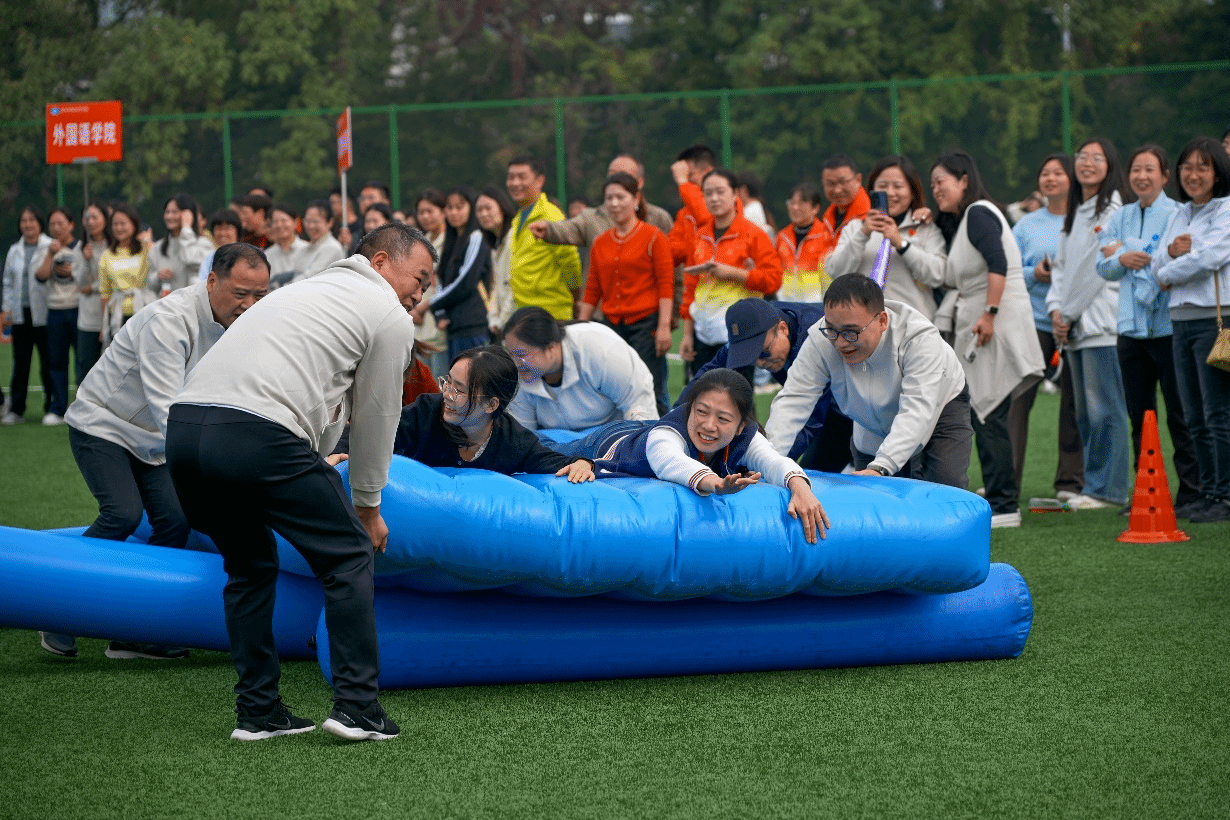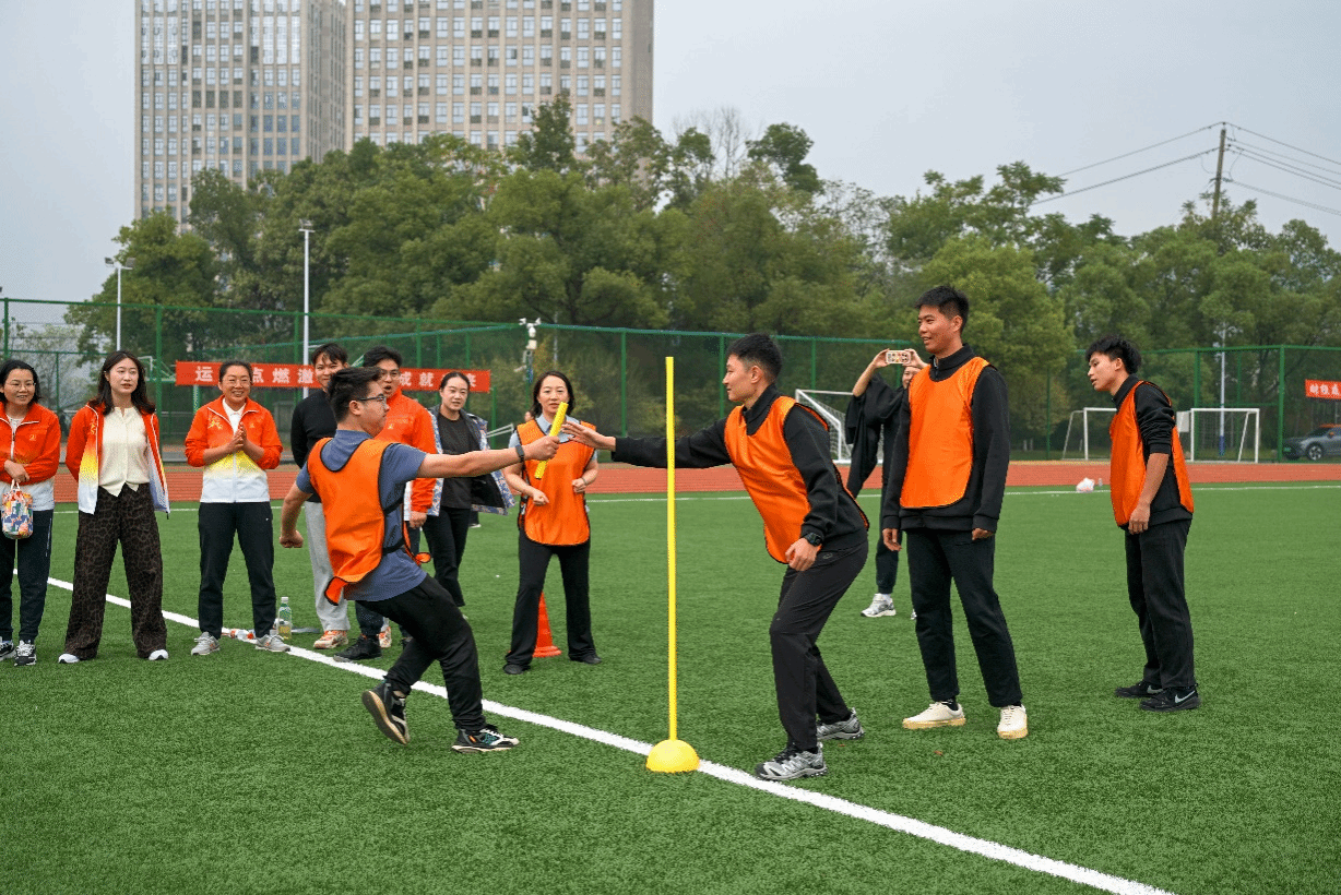 本次运动会共设“鸿运当头”“车轮滚滚”“薪火相传”“迎面接力”四个团体项目,每个项目都巧妙融合了趣味性与竞技性,既考验个人身体素质,又强调团队协作精神。赛场上,加油声、呐喊声、欢笑声此起彼伏,教职工们全情投入、斗志昂扬、配合默契,展现出课堂之外的别样风采。