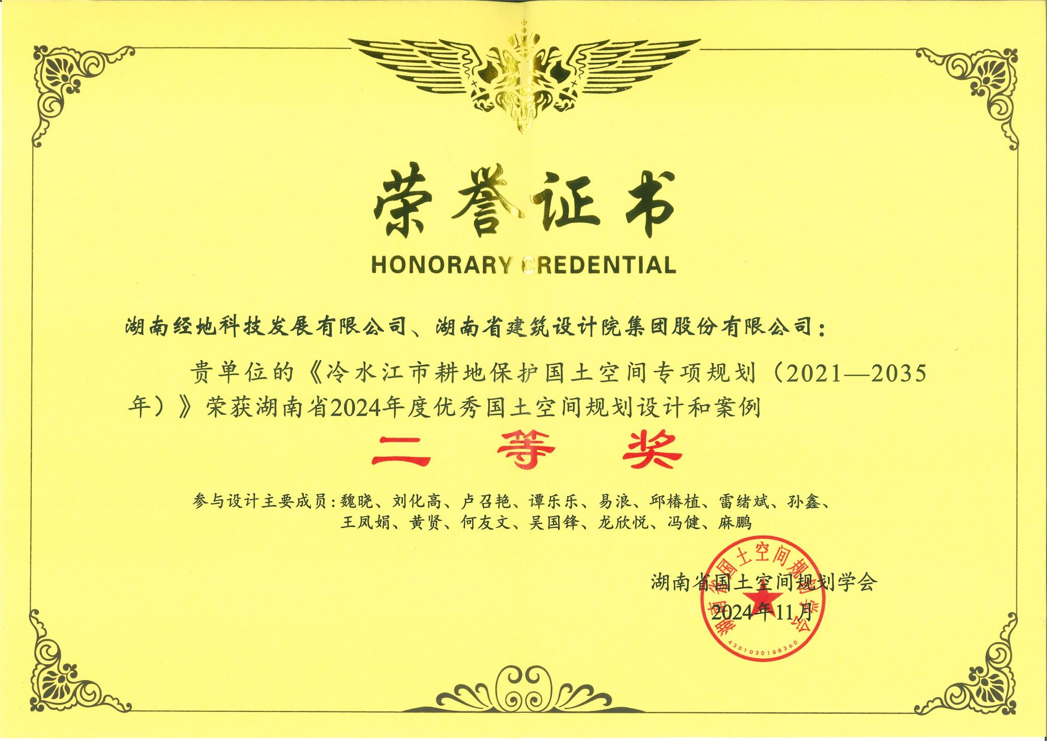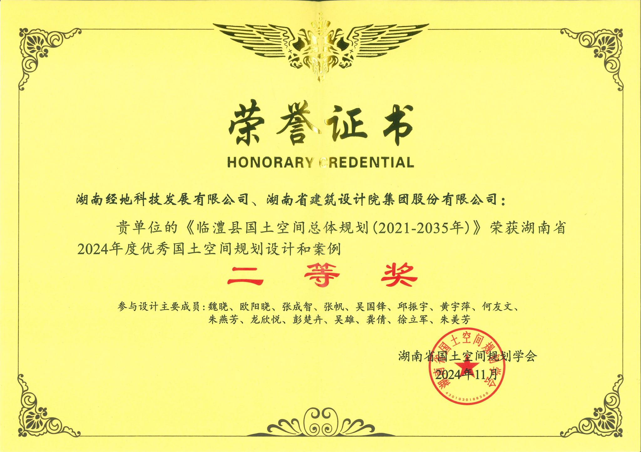 近日,由湖南省自然资源厅指导,湖南省国土空间规划学会主办,湖南省地质博物馆协办的“共绘美丽湖南,共享宜居环境——2024年优秀国土空间规划设计和案例展评活动”圆满落幕。经组织推荐、初审、网络投票、专家评审和评委会综合评议等环节,由beat365官网湖南经地科技发展有限公司(以下简称“经地公司”)技术团队牵头负责,湖南省建筑设计院集团股份有限公司共同编制的《临澧县国土空间总体规划(2021-2035年)》和《冷水江市耕地保护国土空间专项规划(2021-2035年)》两个项目均荣获2024年度优秀国土空间规划设计和案例评选二等奖。