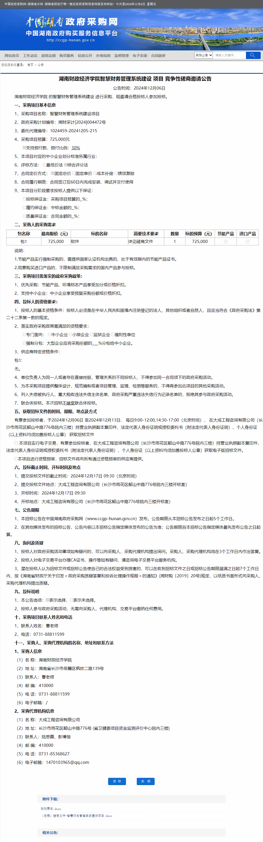 湖南省政府采购网:beat365中文在线官网智慧财务管理系统建设项目竞争性磋商邀请公告