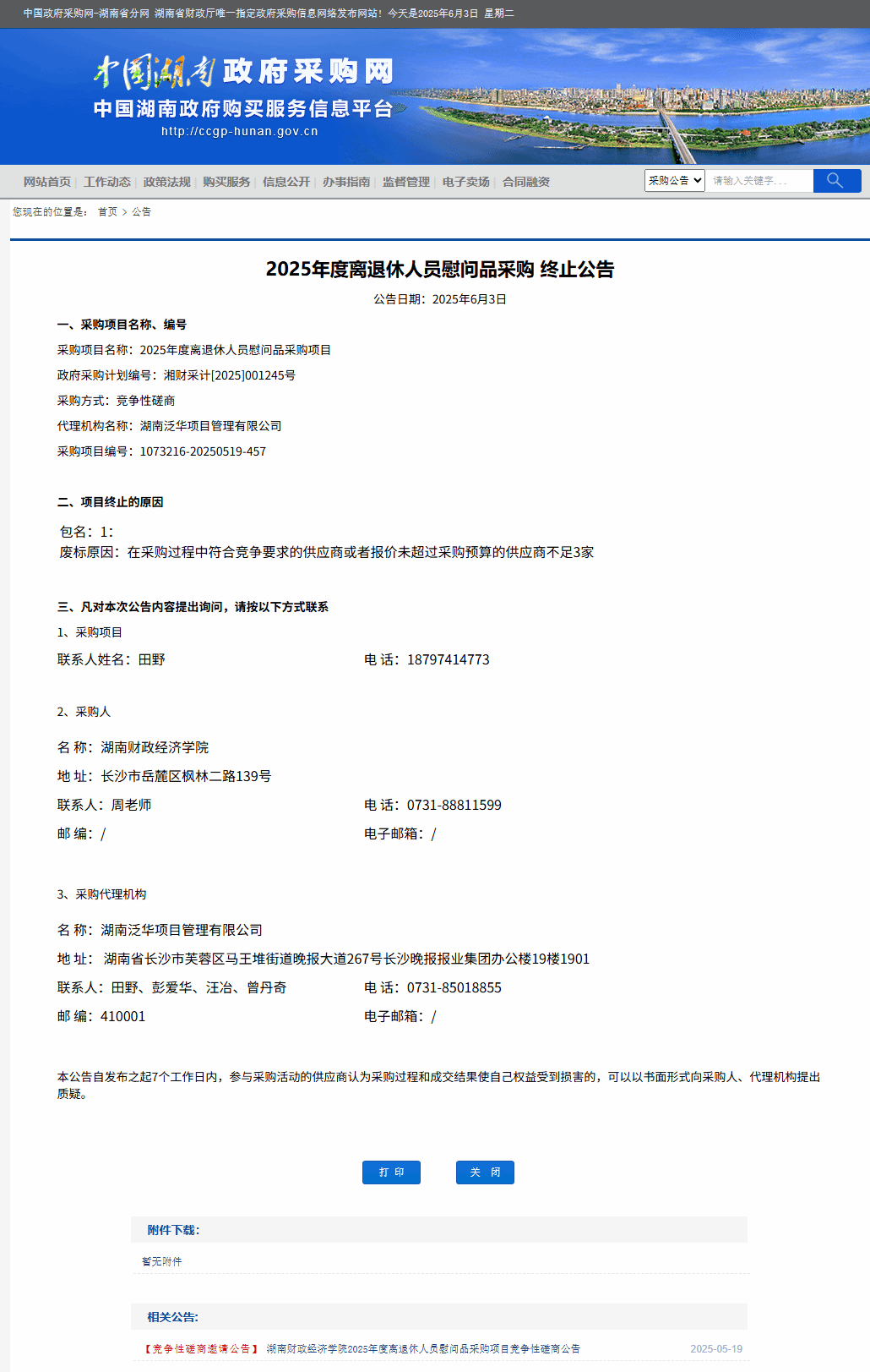 湖南省政府采购网:beat365中文在线官网2025年度离退休人员慰问品采购终止公告