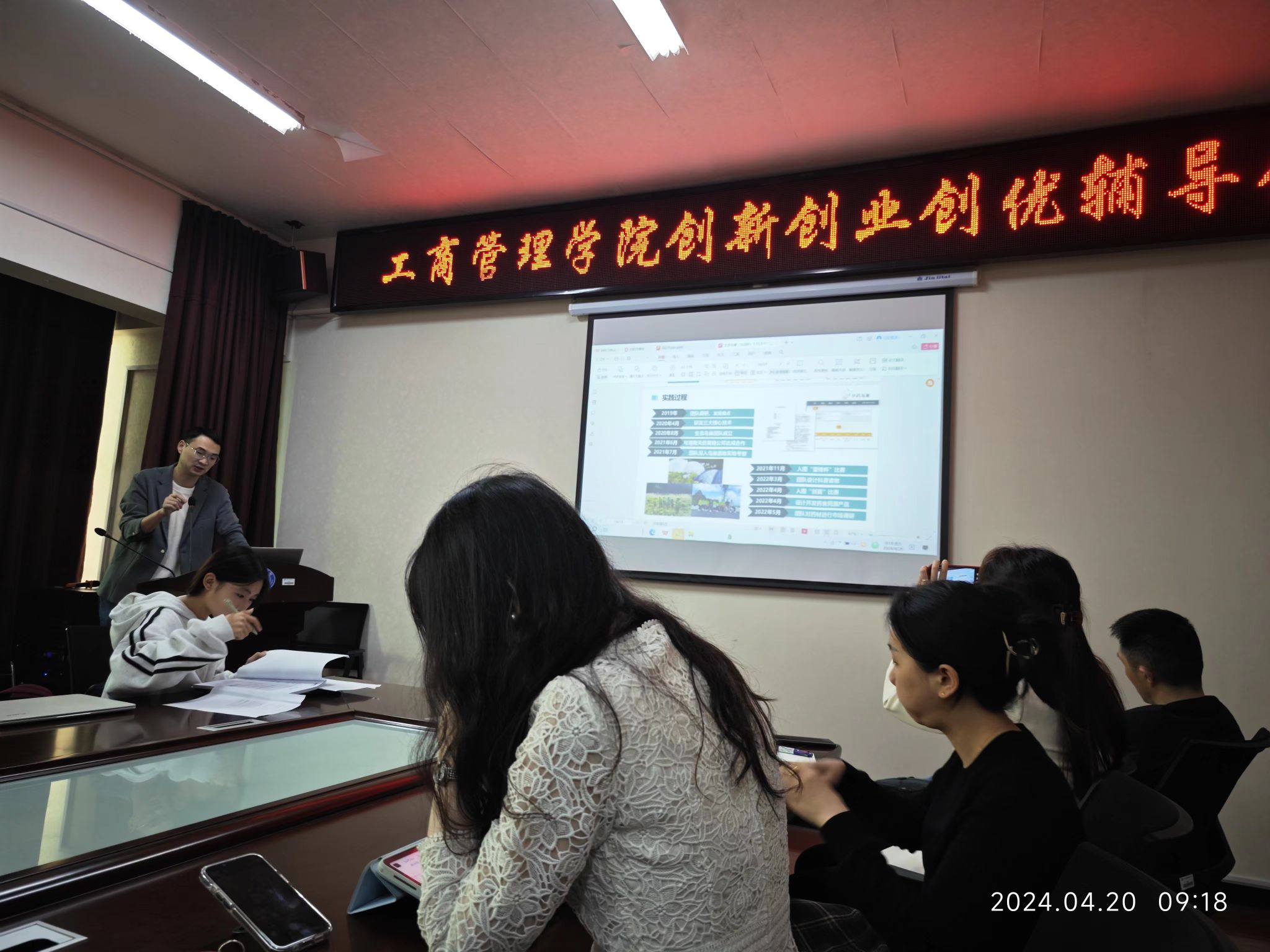 杨鹏强调,学院高度重视创新创业教育,将其融入学院人才培养全过程,注重理论教育与实践活动有机融合,切实提升学生创新创业能力,学院教师应努力培养学生运用基础知识分析、解决问题的能力,深入推进创新创业工作开展。