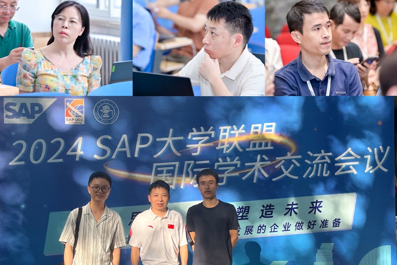 (本网讯)7月16-19日,由管理软件巨头SAP发起,SAP中国大学生联盟主办的“2024 SAP大学联盟国际学术交流会议”在北京交通大学举行。本次活动汇聚了来自国内外的学者、专家和企业代表,聚焦产教融合、校企合作进行深入的交流研讨。工商管理学院院长杨鹏带队,吴梦凌、郭攀、王一博三位博士参加了会议。