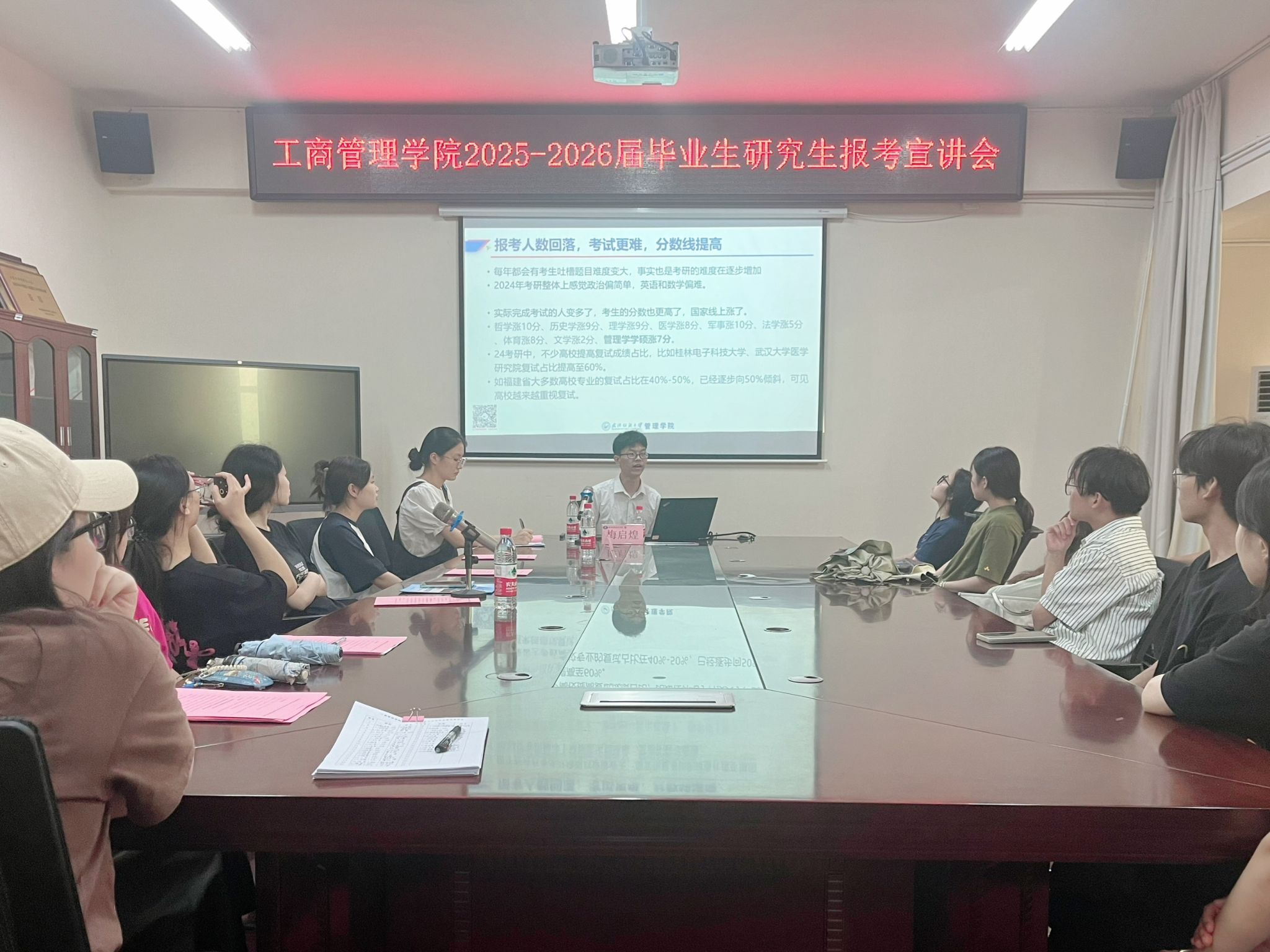 在宣讲会的尾声,梅启煌慷慨地分享了高效备考策略与实用的择校建议。他以生动的案例、详实的数据以及幽默风趣的语言,极大地激发了同学们对考研的热情与信心。未来,工商管理学院会为学子们提供更多的学习机会与平台,带来前沿的知识和宝贵的经验,助力学子们实现自己的梦想。