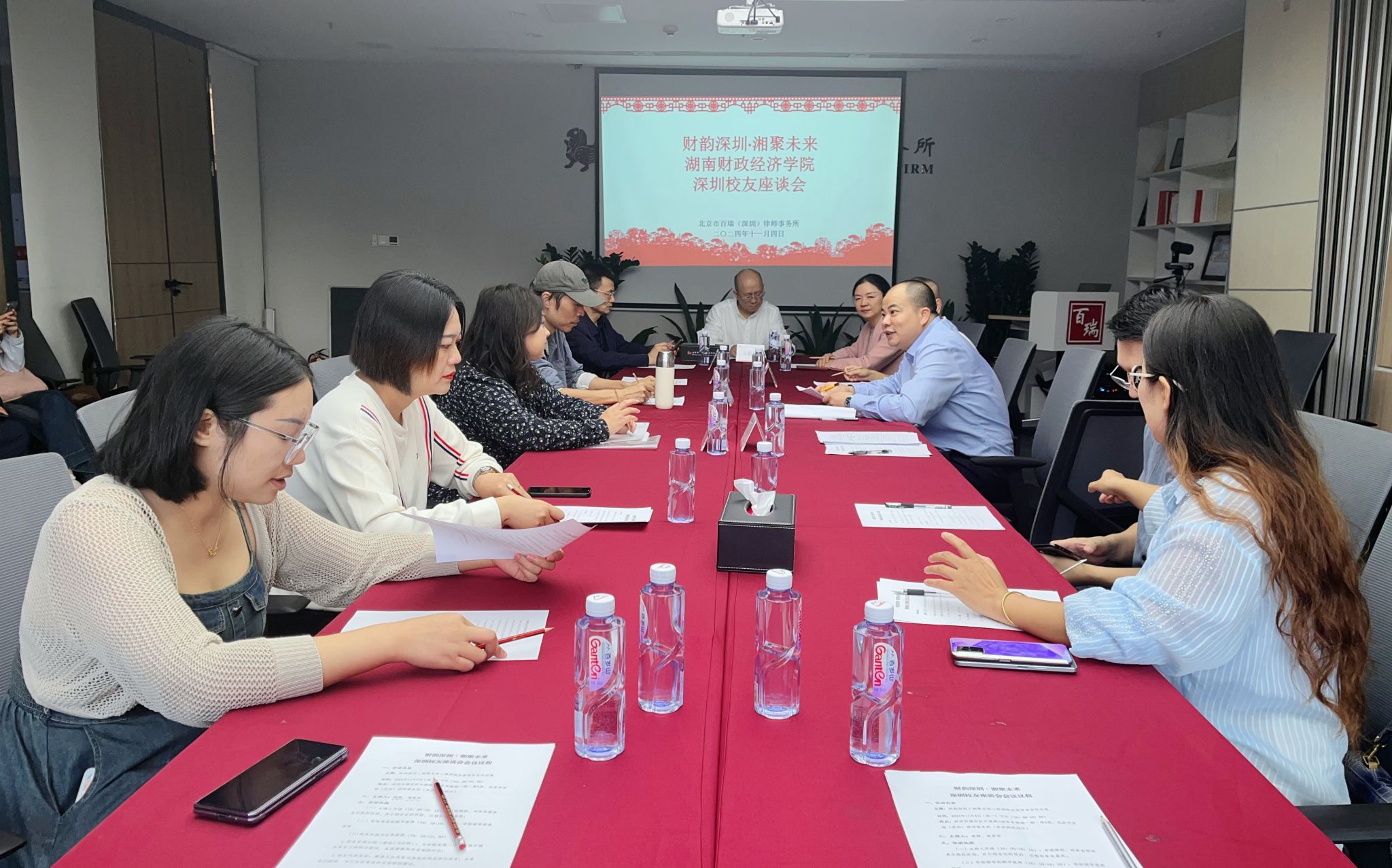(本网讯)11月4日,“财韵深圳·湘聚未来”beat365中文在线官网深圳校友座谈会在百瑞律师事务所举行。beat365中文在线官网副校长赵鹤平,财务处处长曹松林,工商管理学院党委书记王跃军,副院长梁辉煌以及在深校友代表参加会议。会议由2000级会计学院校友、深圳校友会秘书长凌辉主持。