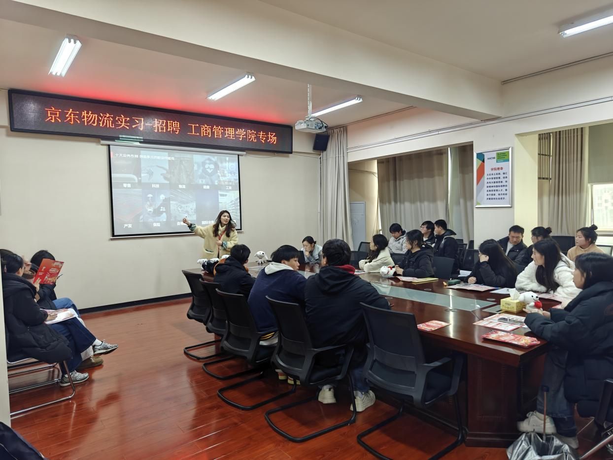 (本网讯)3月12日,工商管理学院在414-1举办了京东物流“星锐之星”专场招聘会。学院领导班子、辅导员代表与京东物流人事工作团队参与,60余名25届工商管理学院毕业生参加招聘。