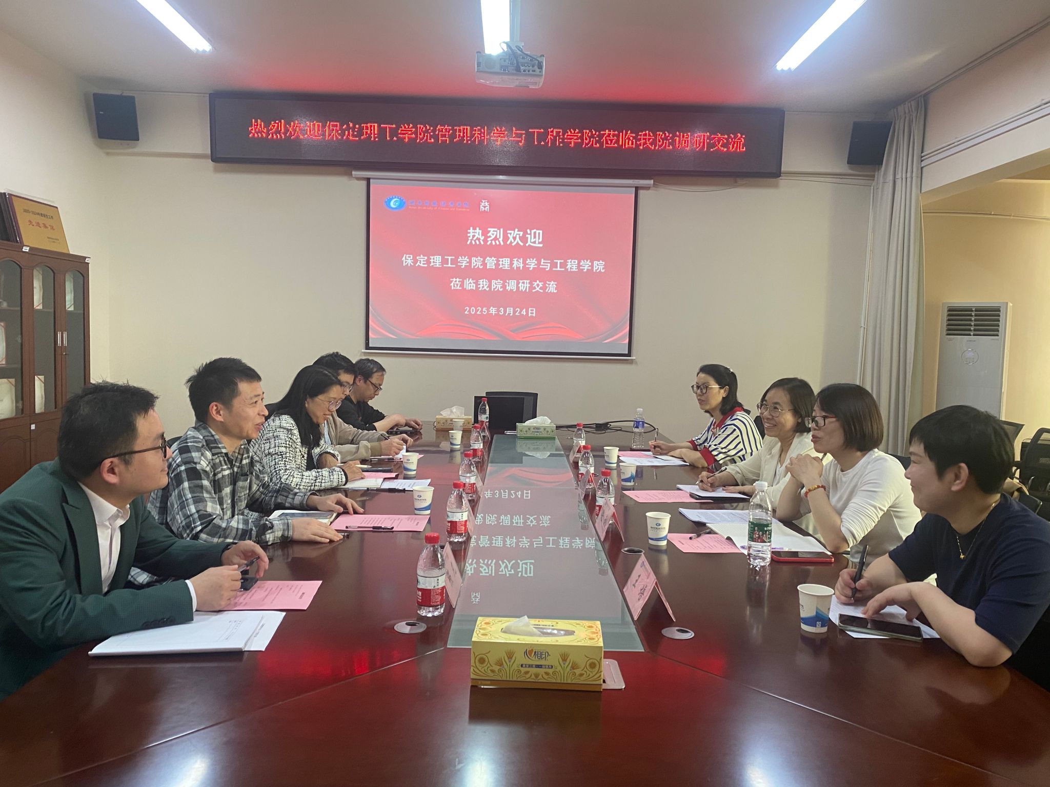 (本网讯)3月24日下午,保定理工学院管理科学与工程学院教学副院长王培教授率教研室主任一行4人到访beat365官网工商管理学院。工商管理院院长杨鹏、副院长梁辉煌及各系主任热情接待,双方围绕“数字时代管理学科转型与创新”主题展开深度对话。