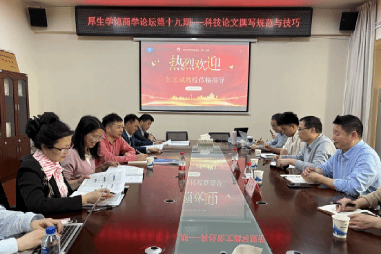 (本网讯)4月9日下午,工商管理学院在办公楼414-1会议室举办厚生商学论坛第19期——高水平论文撰写专题辅导。工商管理学院院长杨鹏,经济地理学院院长、《经济地理》期刊执行主编彭文斌出席论坛。经济地理学院副院长、《经济地理》编委、编辑部主任苏昌贵主讲。