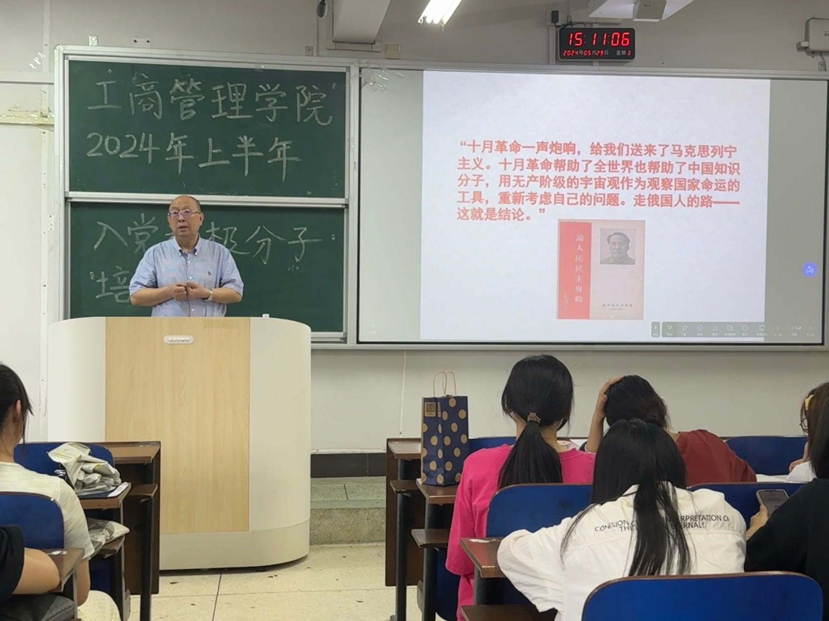 培训伊始,全体起立,奏唱《中华人民共和国国歌》。随后,温嘉伟介绍入党积极分子的培训计划与考核标准,强调加强入党积极分子培训的重要性,并就具体培训提出纪律要求。李祎成结合党的历史和实践,对党的性质、宗旨和最高理想等进行了深刻细致的讲解,强调学员应重视理论知识的学习,加强自己的政治理论素养,确保在思想和行为上与党中央保持高度一致。