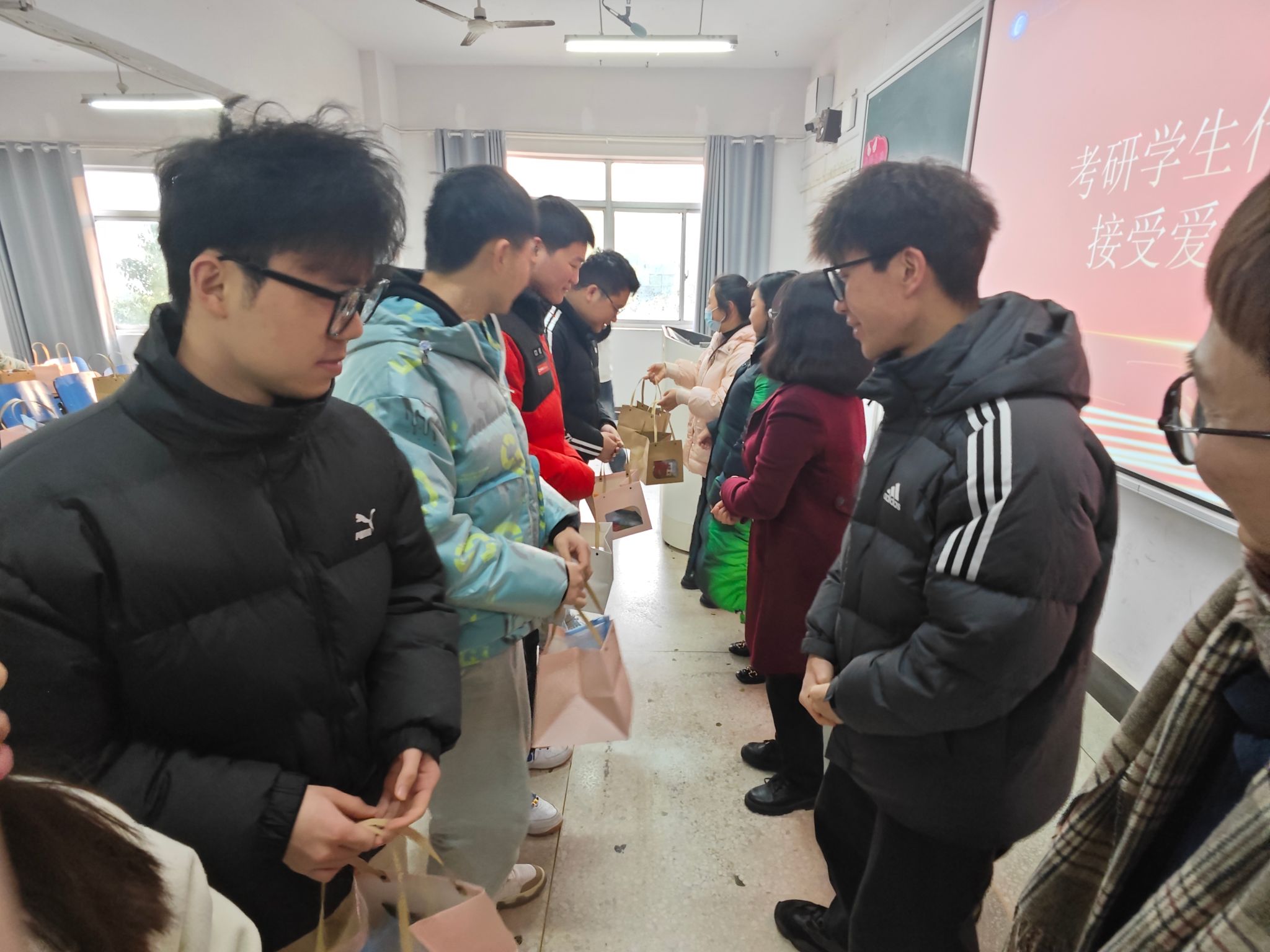 随后,考研学生代表上台接受了爱心礼物,学院为每一位考研学子都准备了一份温暖礼物,这份礼物代表了学院对他们的关心和支持,也激励他们更加努力地备考,全力以赴地去考试!