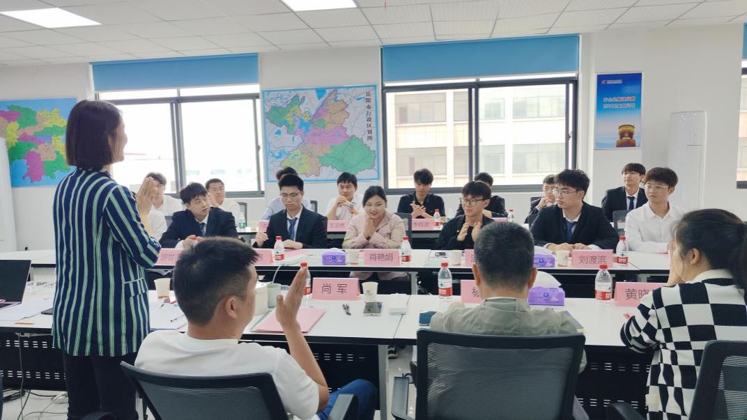 首先九鼎农牧有限公司总经理尚军、营销总经理杨骏、人事经理李一鑫等领导对工商管理学院一行表示欢迎,并对公司概况、发展历程、子公司分布、员工晋升渠道、福利待遇等方面进行了详细介绍,帮助同学们深入了解九鼎集团的企业文化、工作环境,让学生提前感受公司氛围,了解工作内容。随后,对同学们开展集体面试,学生们也依据自己感兴趣的要点进行提问。面试后,多名学生表达了愿意就业的想法。