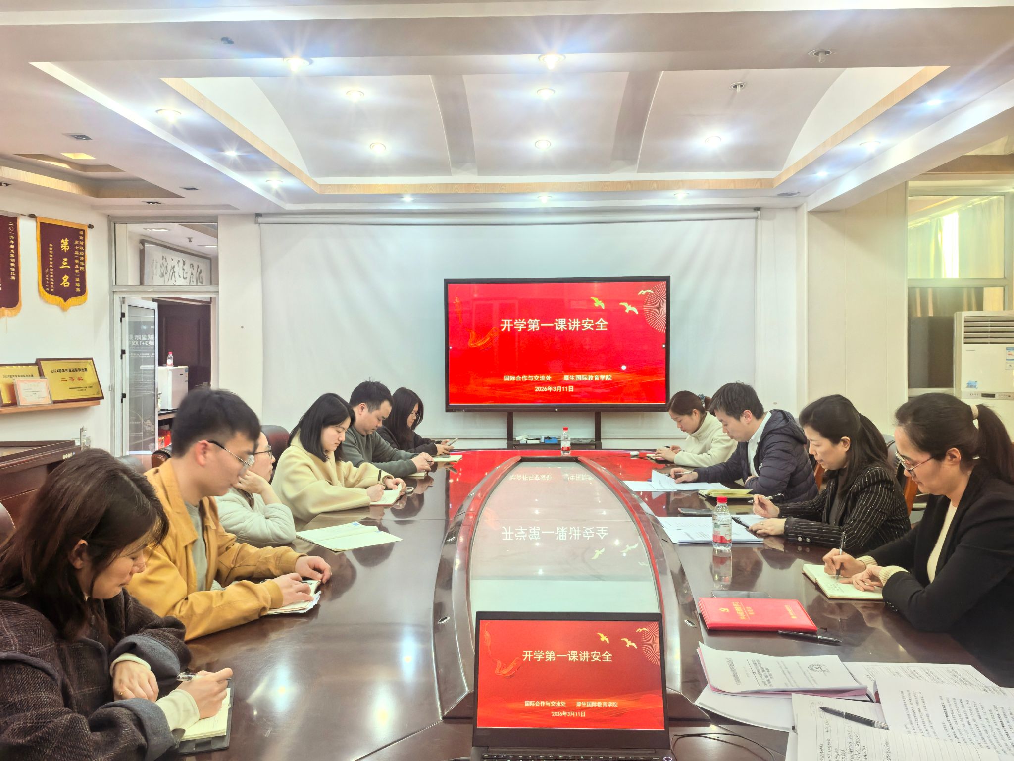 为深入贯彻落实国务院安委会安全生产治本攻坚三年行动要求,切实做好春季开学安全保障工作,按照学校2026年“开学第一课讲安全”活动方案部署,国际合作与交流处、厚生国际教育学院紧扣工作要求、细化落实举措,通过实地排查隐患、召开主题班会、开展专题学习等多种形式,扎实开展开学安全第一课系列活动,全方位筑牢校园安全防护网,为新学期校园安全稳定奠定坚实基础。