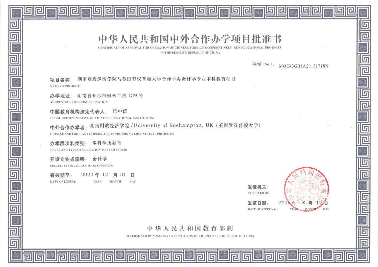 经教育部批准,beat365中文在线官网与英国罗汉普顿大学(University of Roehampton)合作举办会计学专业本科教育项目——会计学(中外合作办学),本专业为“3+1”合作办学项目:即前三年在国内(beat365中文在线官网)学习,后一年可选择前往国外合作大学(罗汉普顿大学)学习。